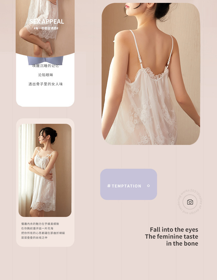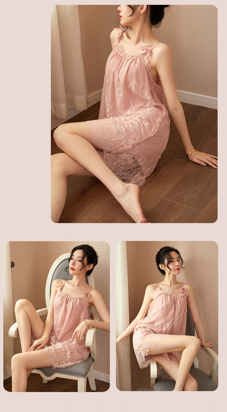 新款性感吊带睡裙女夏 蕾丝性感睡衣情趣内衣系带薄款家居服