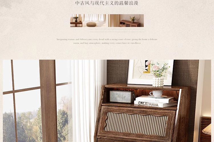 빈티지 베이 창 매트 창 밀 매트 2024 새로운 중국 스타일 쿠션 발코니 매트 이동식 세척 가능한 헤링본 패턴 골동품 스타일