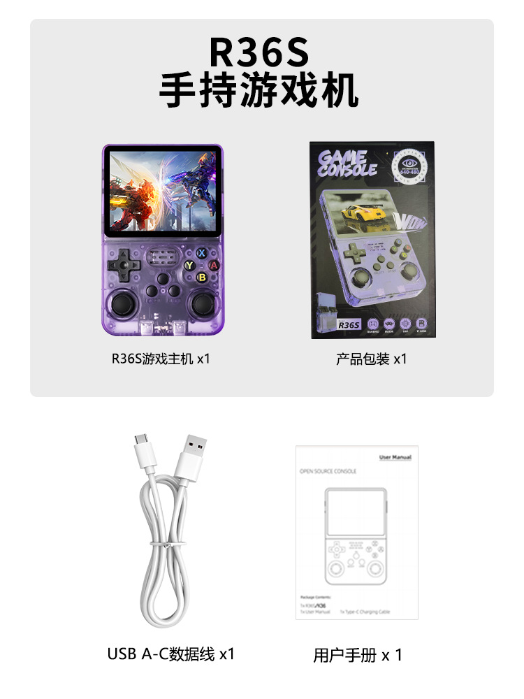 새로운 r36 오픈 소스 핸드 헬드 게임 기계 휴대용 레트로 아케이드 게임 향수 3D 듀얼 시스템 핸드 헬드 국경스토어 가기