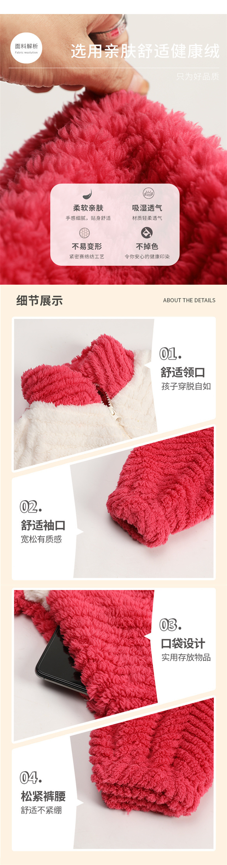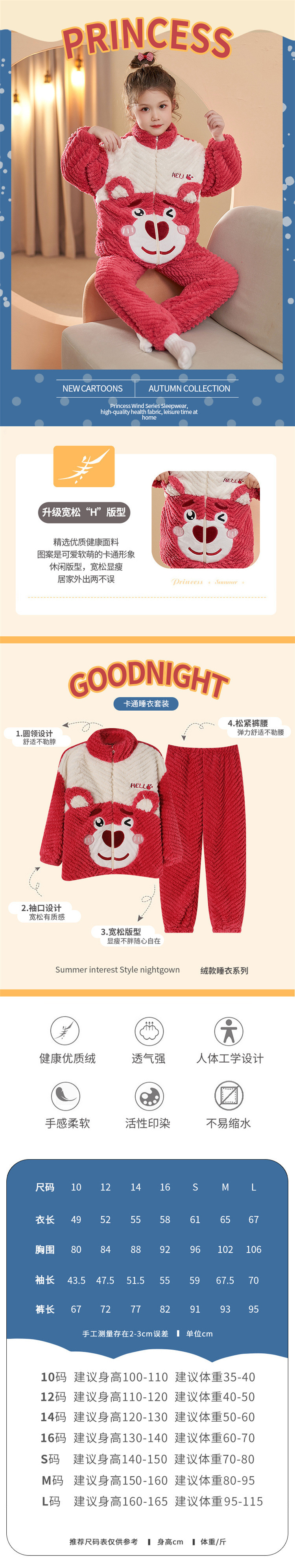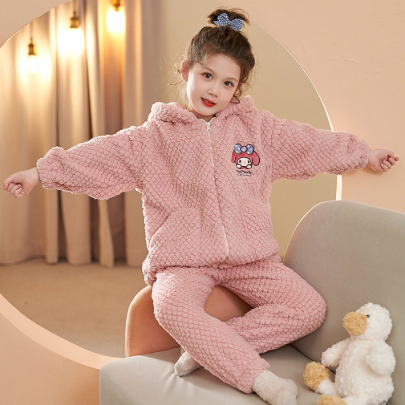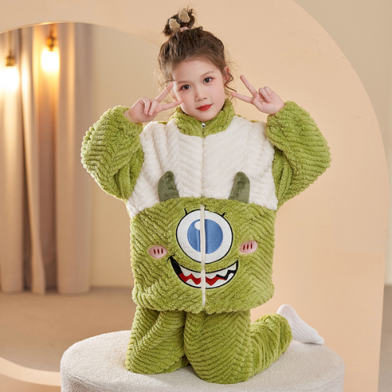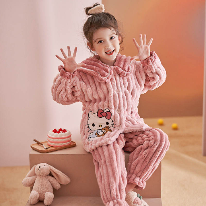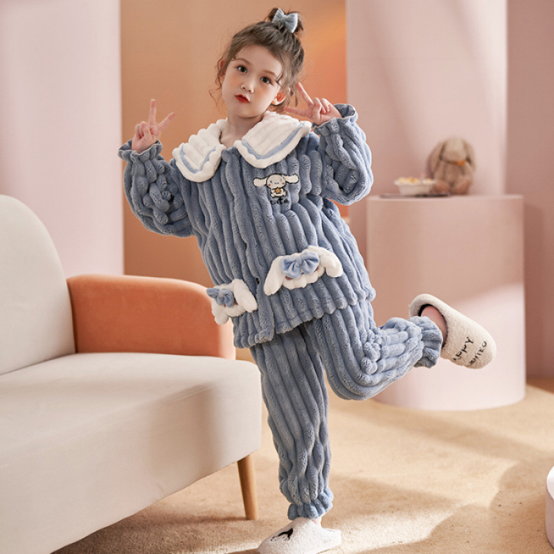 가을과 겨울 어린이 잠옷 소녀 카디건 플란넬 중소 어린이-L 사이즈 세트 그램 따뜻한 가정 의류스토어 가기