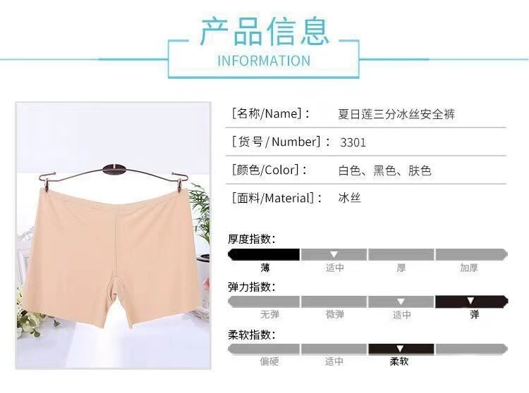 Xia Nilian 3301 아이스 실크 원활한 안전 바지 숙녀 여름 3 점 바지 안티 라이트 레깅스