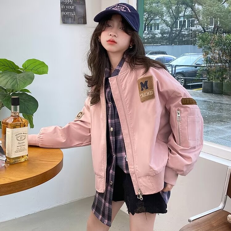 소녀 야구 세트 코트 2024 봄과 가을 새로운 어린이 서양식 재킷 옷 큰 어린이 가을 재킷 소녀스토어 가기