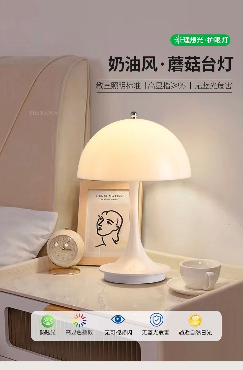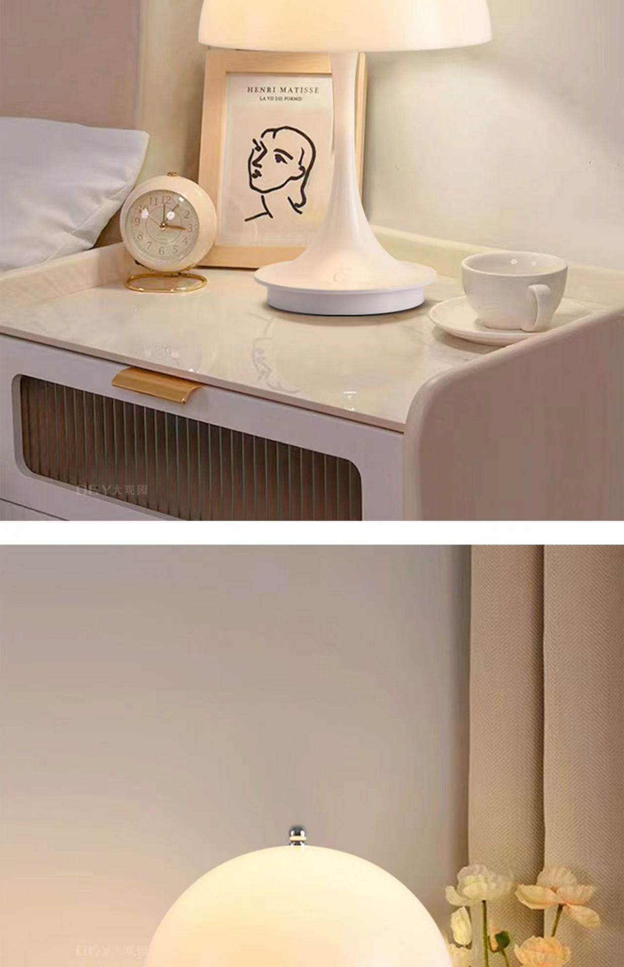 국경 덴마크 창조적 인 북유럽 테이블 램프 침실 침실 분위기 램프 충전 휴대용 중간 버섯 장식 버섯 램프스토어 가기