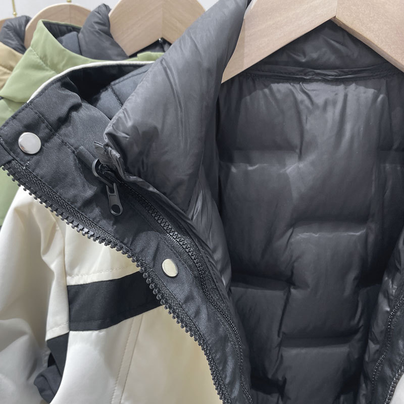 里面内胆是一件立领的轻薄羽绒服,