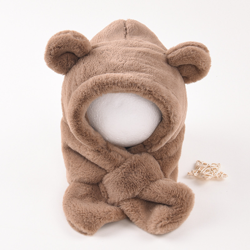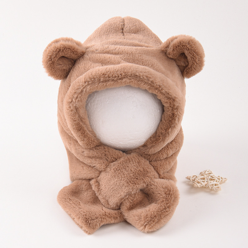 • 플러시 귀 보호 일체형 모자 라이트 브라운