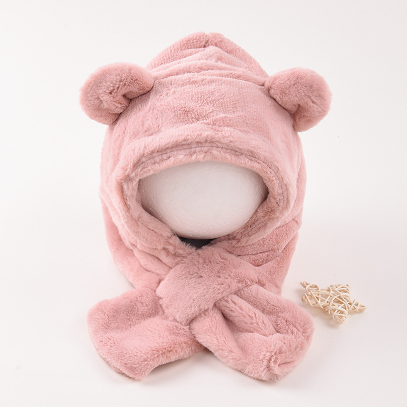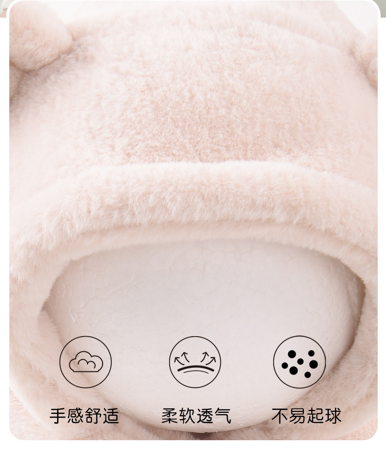 • 플러시 귀 보호 일체형 모자 핑크