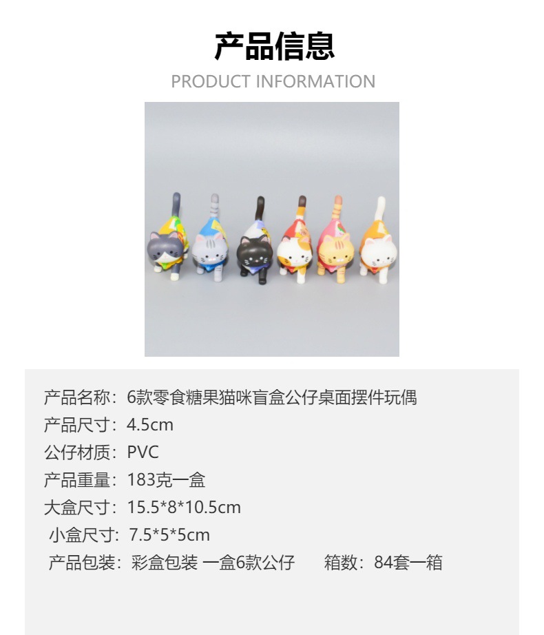 트렌디한 블라인드 박스, 고양이 간식 6종, 고양이 사탕, 귀여운 산책하는 새끼 고양이, 데스크탑 장식품, 인형, 인형뽑기 박스, 계란스토어 가기
