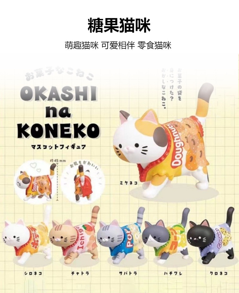 트렌디한 블라인드 박스, 고양이 간식 6종, 고양이 사탕, 귀여운 산책하는 새끼 고양이, 데스크탑 장식품, 인형, 인형뽑기 박스, 계란
