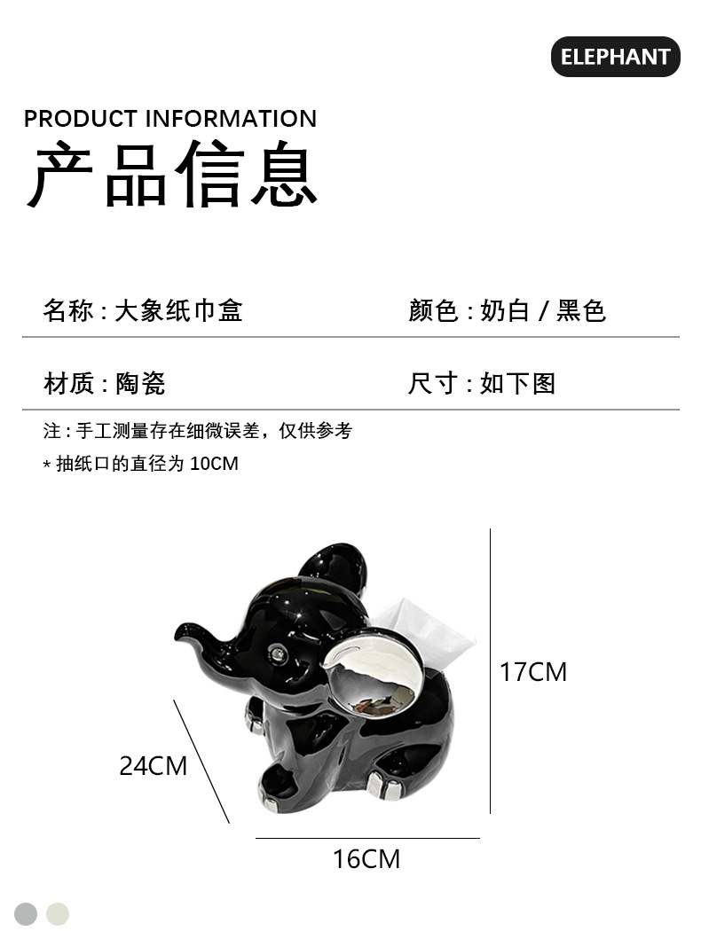 귀여운 코끼리 티슈 박스 거실 데스크탑 냅킨 종이 상자 거실 커피 테이블 하이 엔드 라이트 럭셔리 장식 장식품