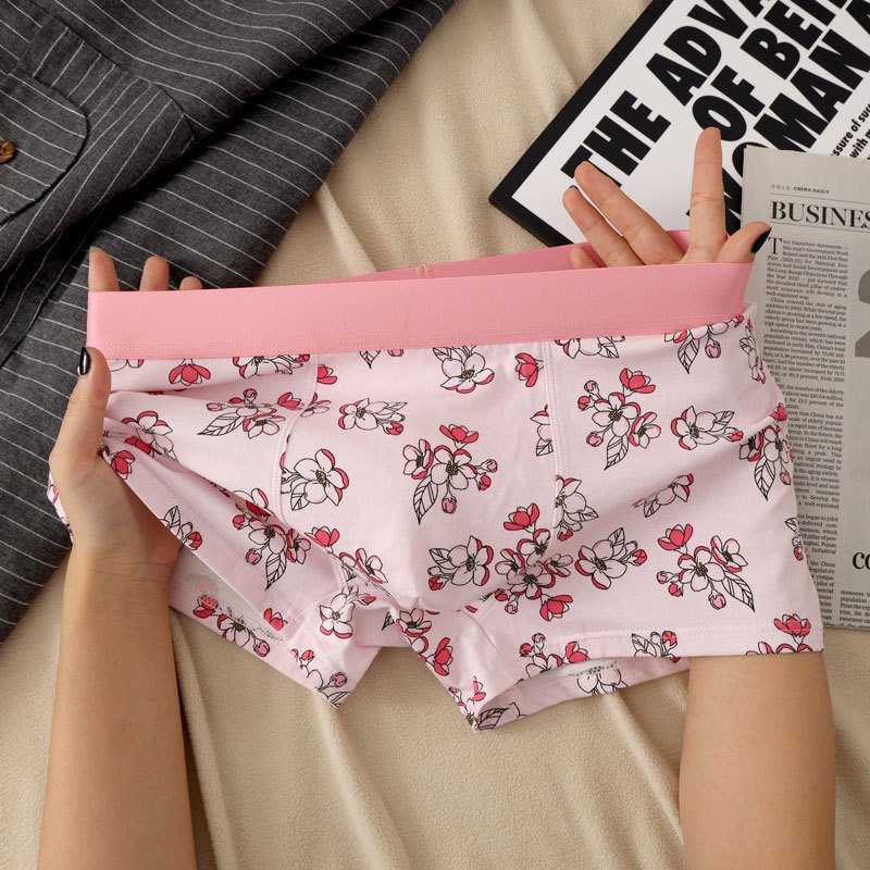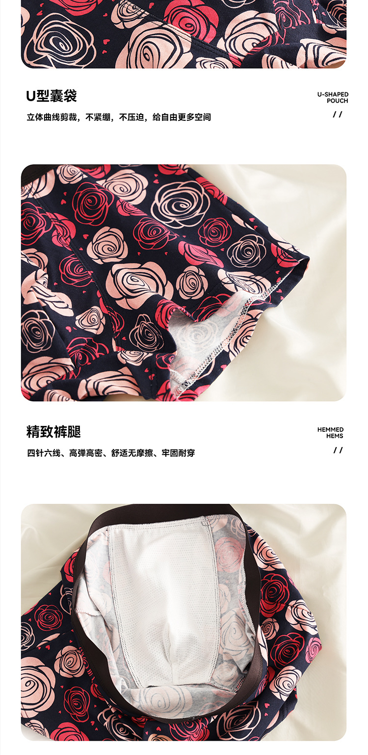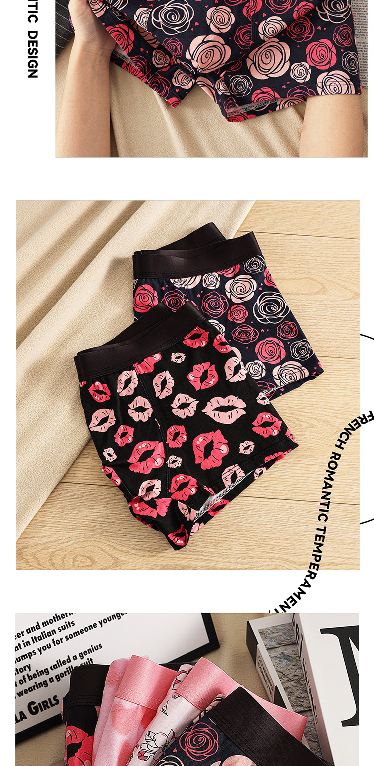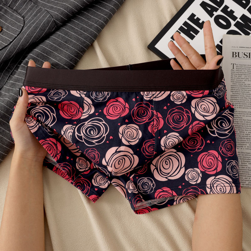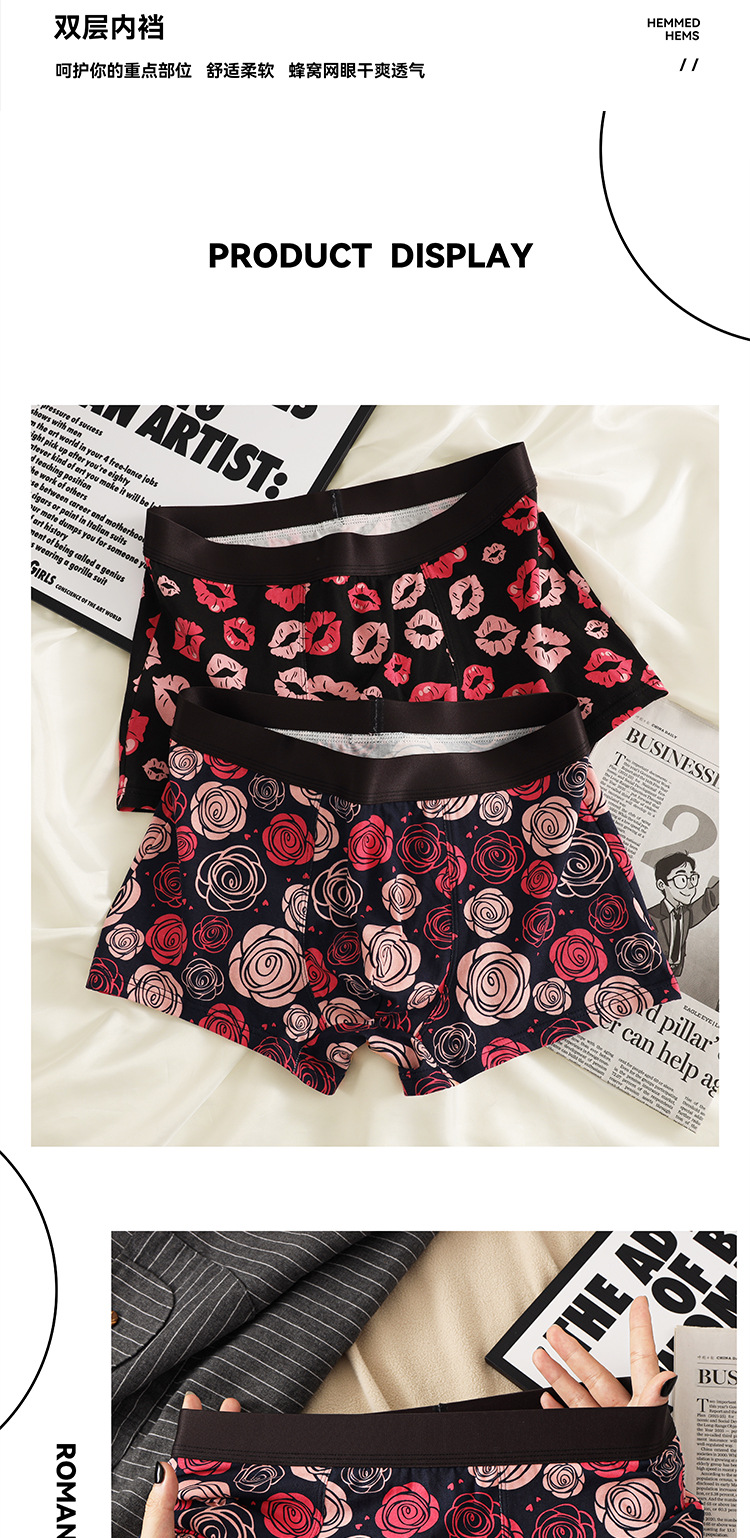 남자 속옷 퓨어 코튼 클래스 A 코튼 플레밍 레드 립 로즈 시리즈 황금 가을 회춘 새로운 4 코너 편안한 통기성 짧은 바지