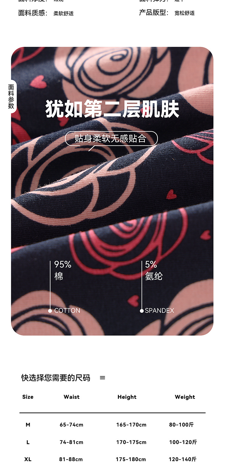 남자 속옷 퓨어 코튼 클래스 A 코튼 플레밍 레드 립 로즈 시리즈 황금 가을 회춘 새로운 4 코너 편안한 통기성 짧은 바지스토어 가기