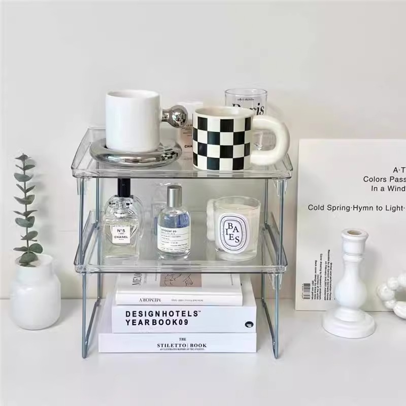 Ins 스타일 아크릴 데스크탑 접이식 스토리지 랙 티컵 트레이 랙은 다층 인터넷 연예인 스토리지 랙과 겹쳐집니다.스토어 가기
