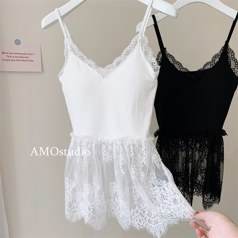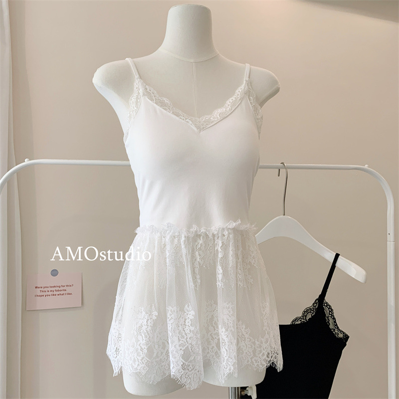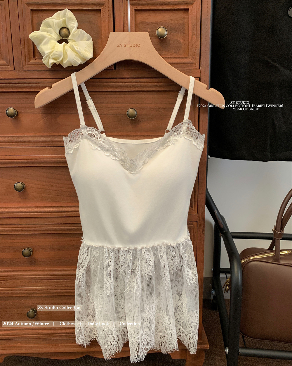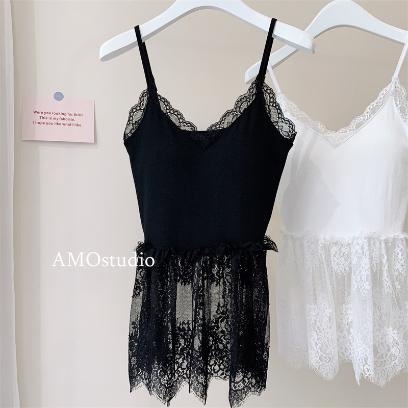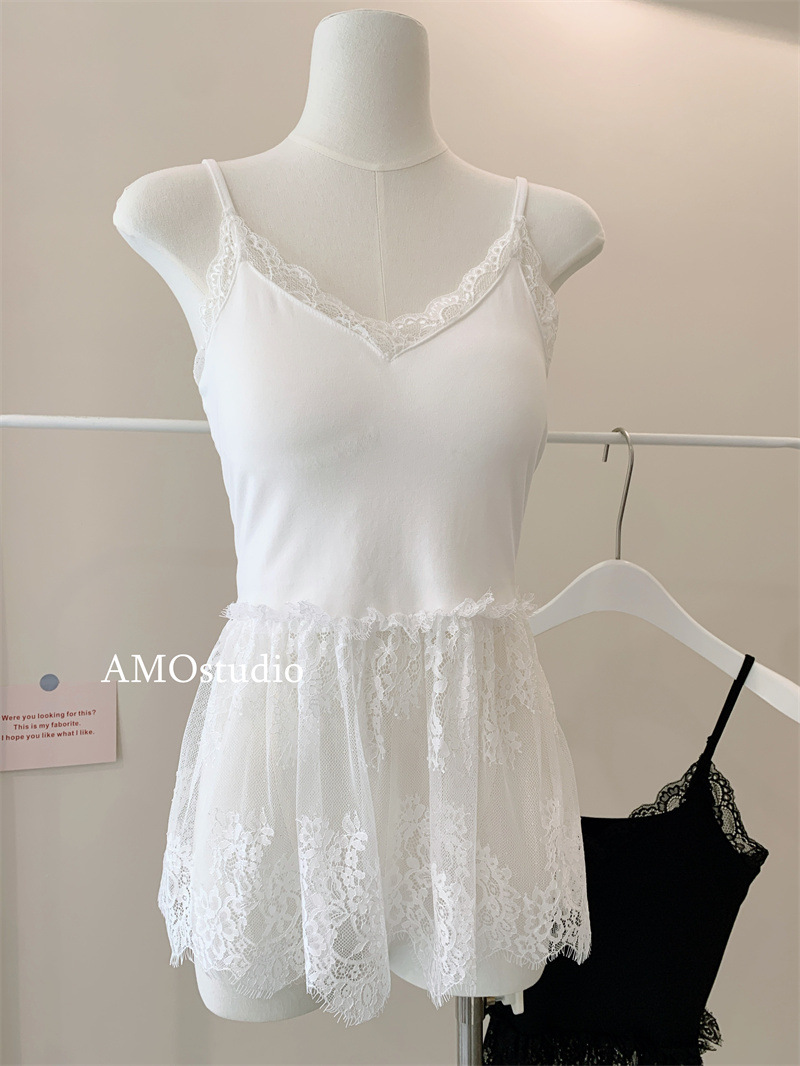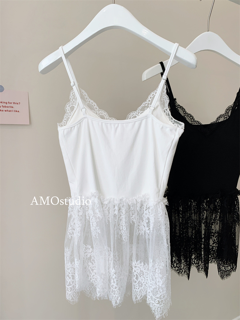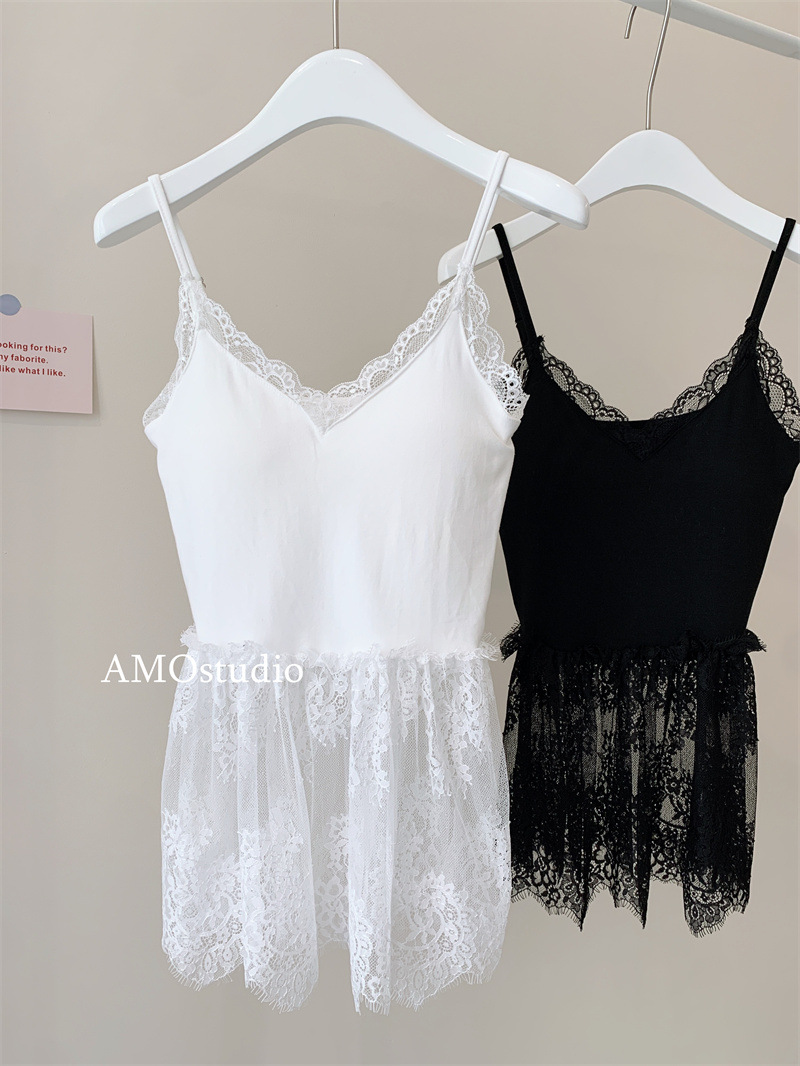 하이 엔드 스태킹웨어 슬림핏 슬림핏 스파이스 걸 레이스 독특한 허리 스트랩 원피스 베이스 셔츠 민소매 탑