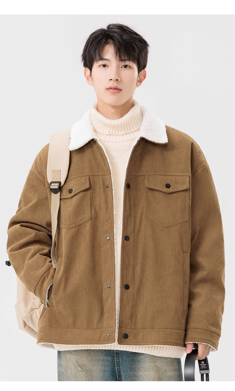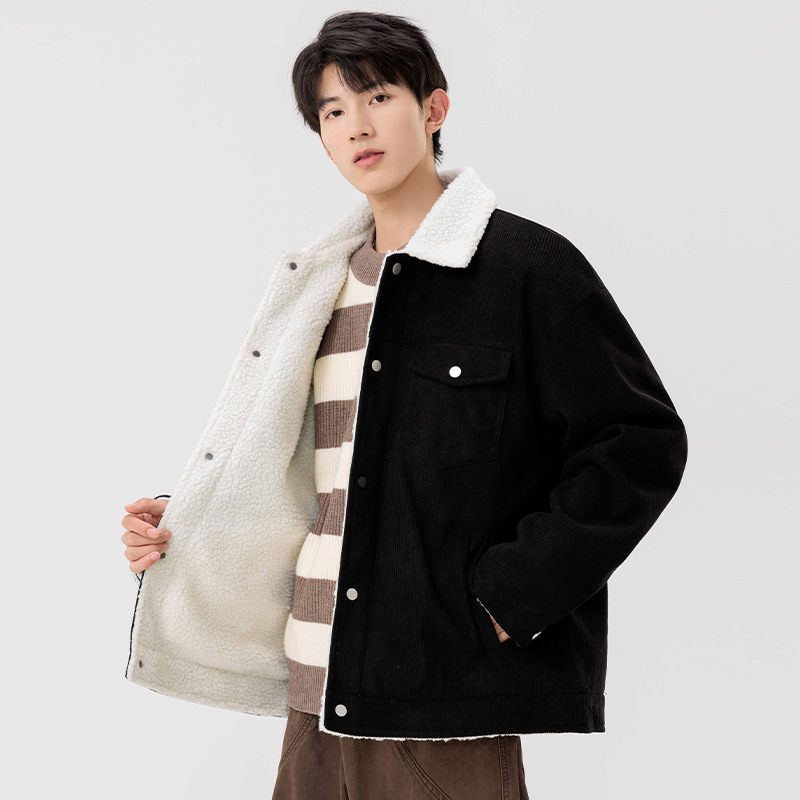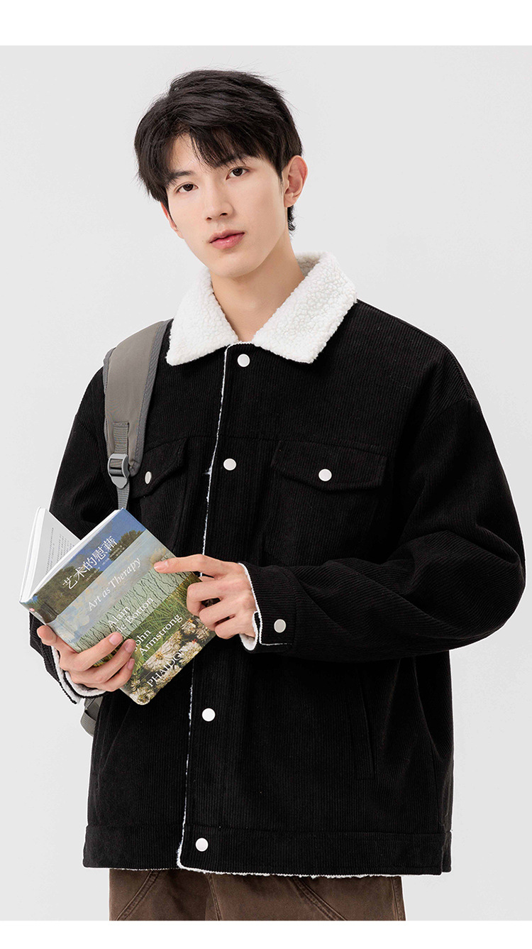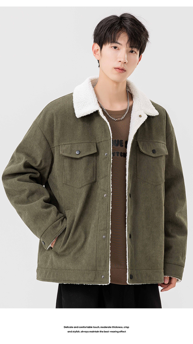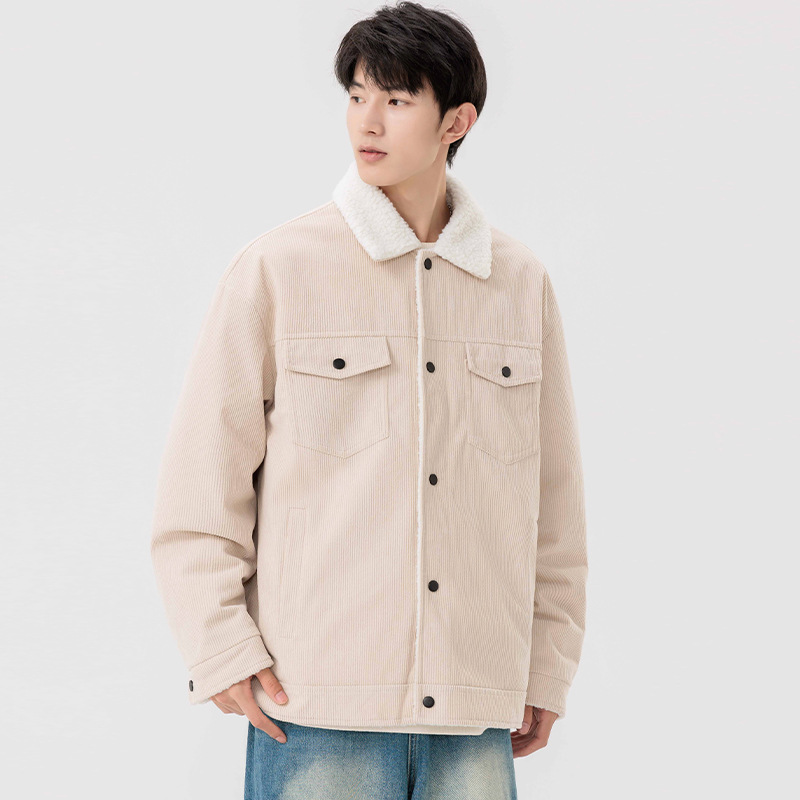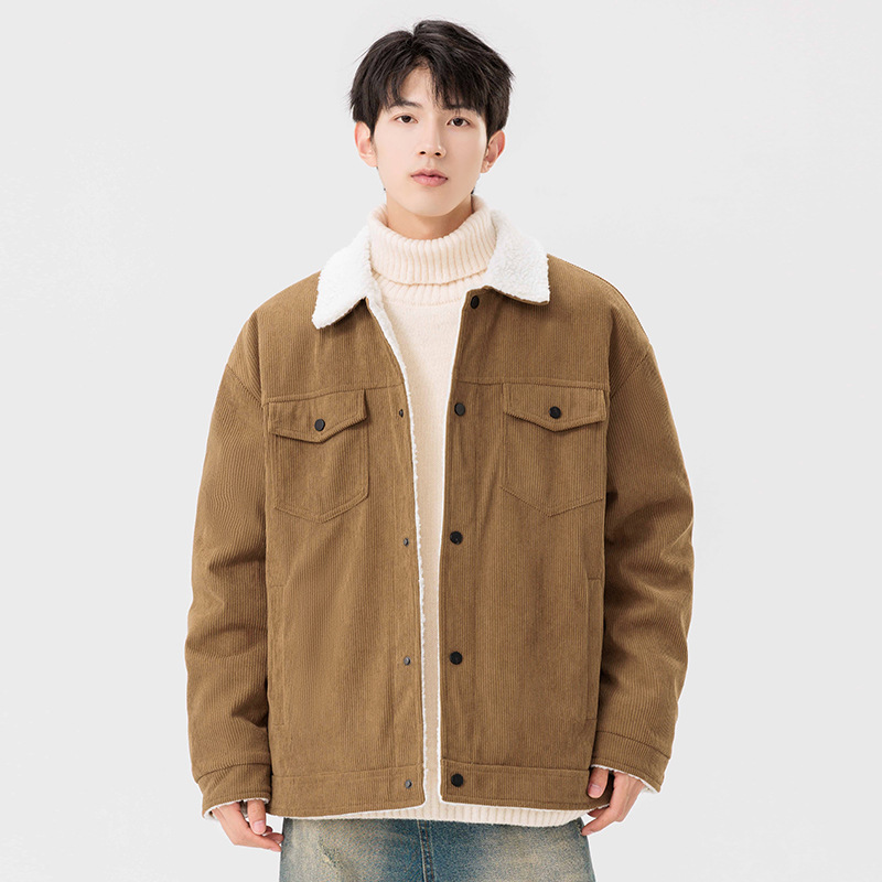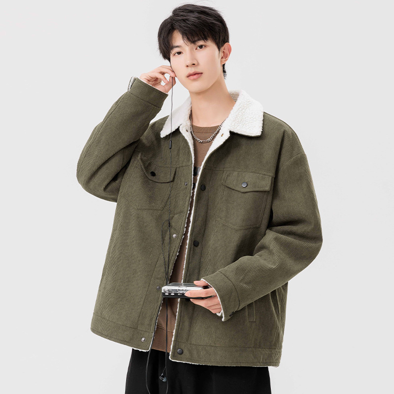 남자 가을과 겨울 새 기모 따뜻한 면화 옷 남자 트렌디 한 양가죽 자켓 느슨한 올매치 잘 생긴 재킷스토어 가기