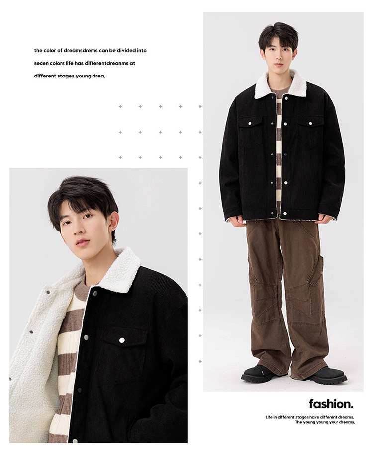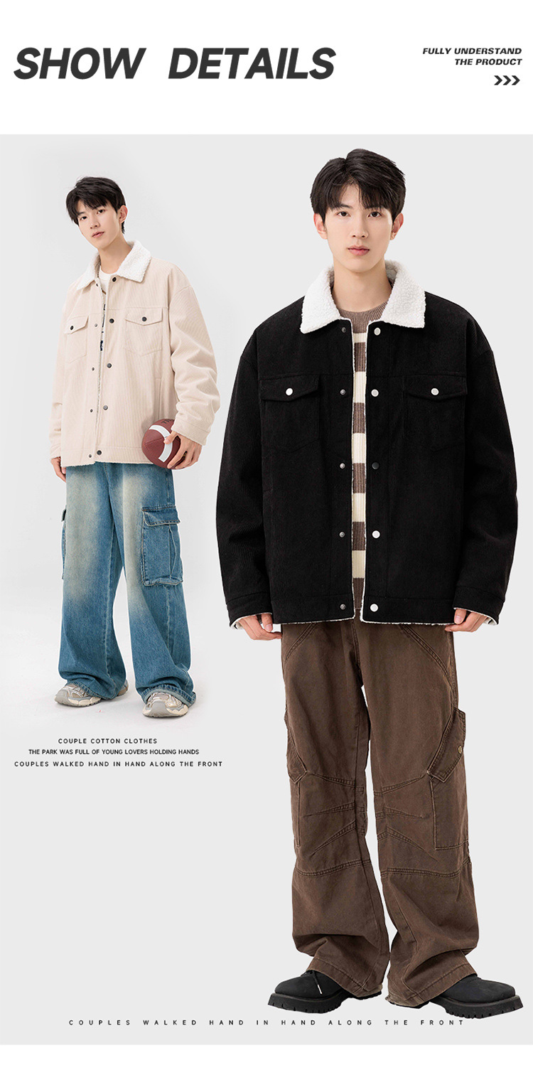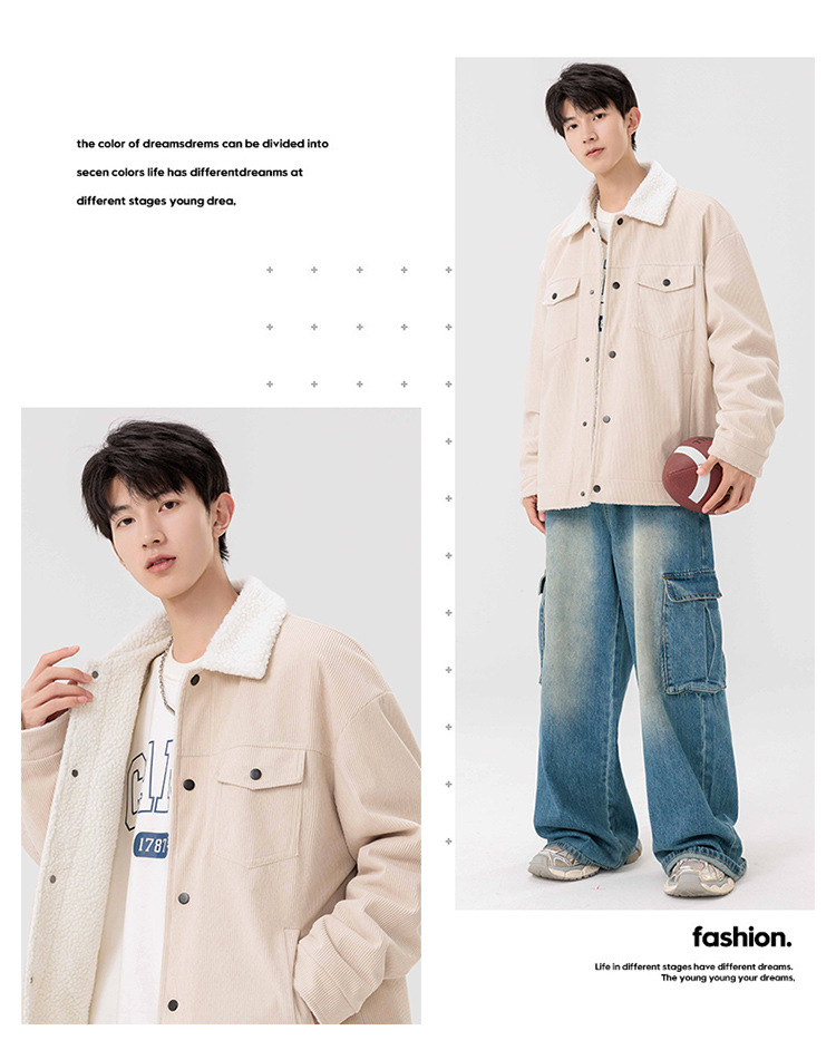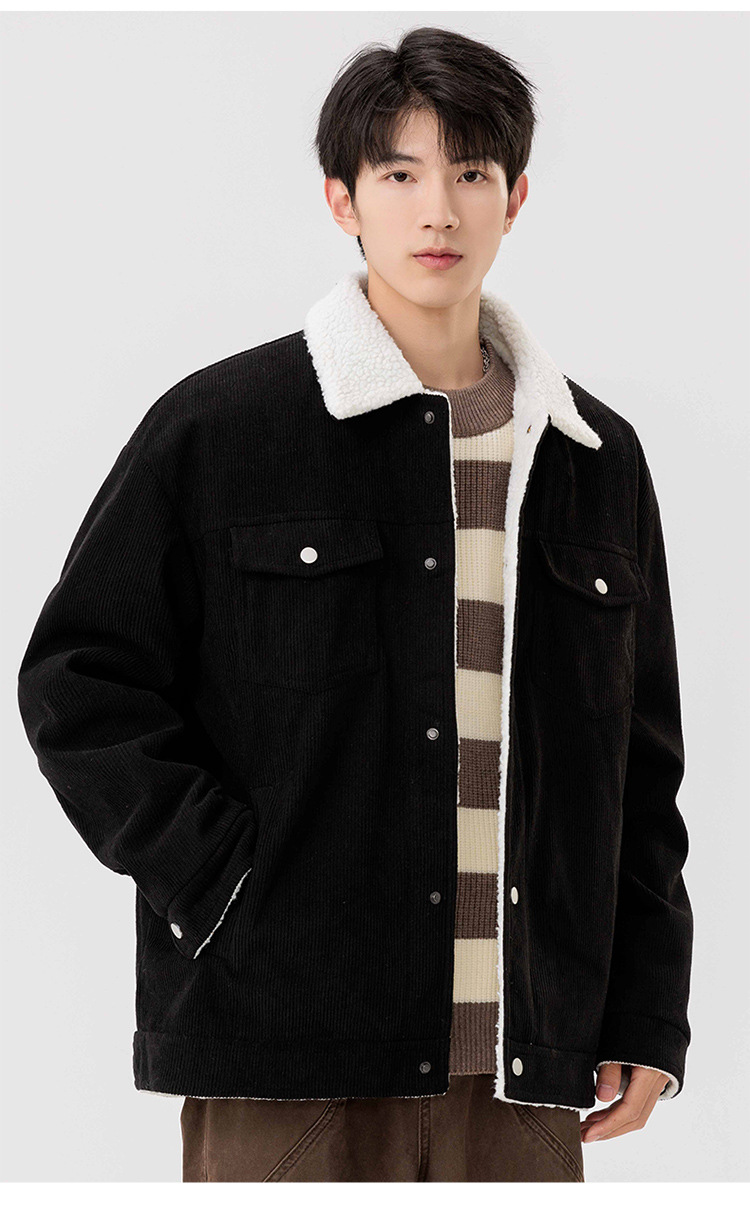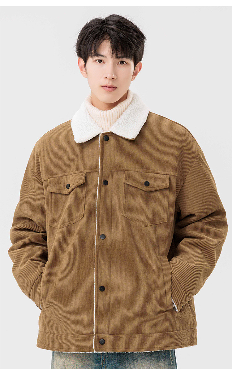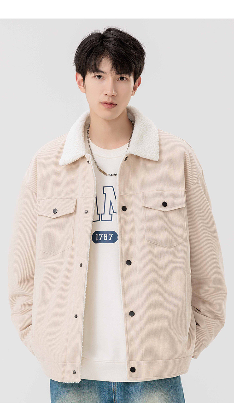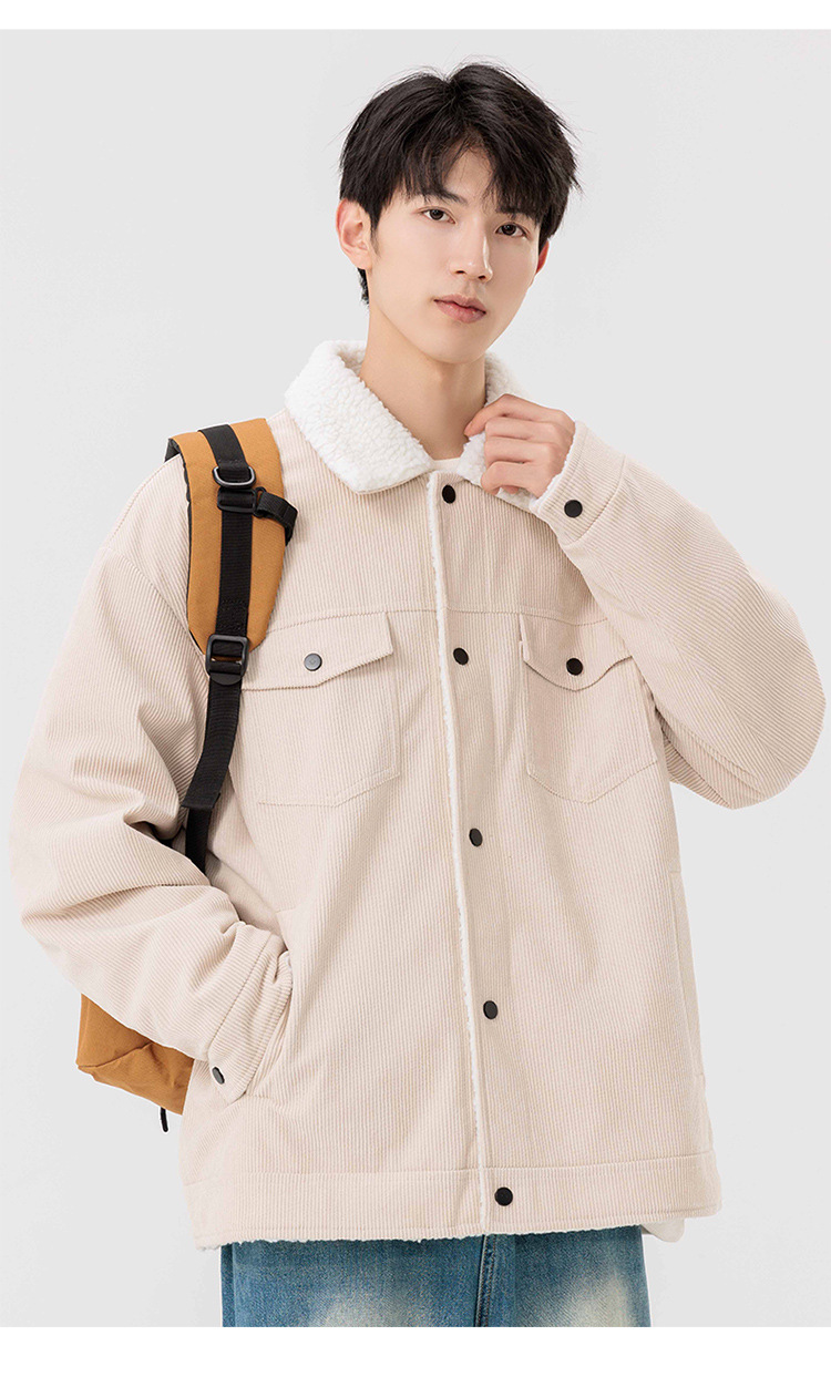 남자 가을과 겨울 새 기모 따뜻한 면화 옷 남자 트렌디 한 양가죽 자켓 느슨한 올매치 잘 생긴 재킷스토어 가기