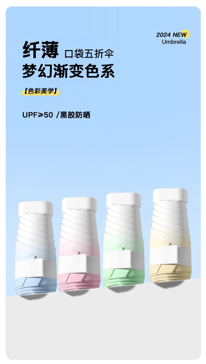 50% 접은 그라디언트 컬러 맑고 비오는 이중 사용 여성 태양 우산 선 스크린 우산 접이식 미니 두꺼운 양산 우산