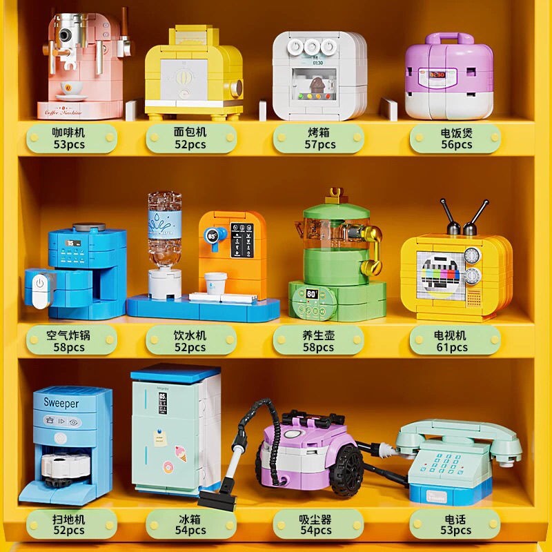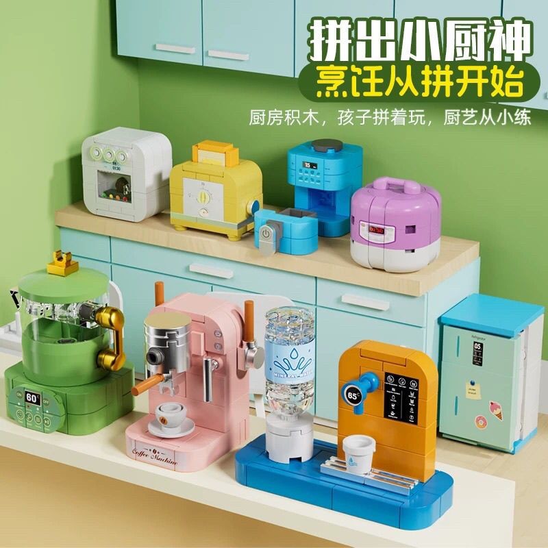 스퀘어 오렌지 빌딩 블록 어린이 혜택 인텔리전스 조립 미니 가전 모델 장난감 소년 빵 기계 퍼즐 소녀 선물스토어 가기