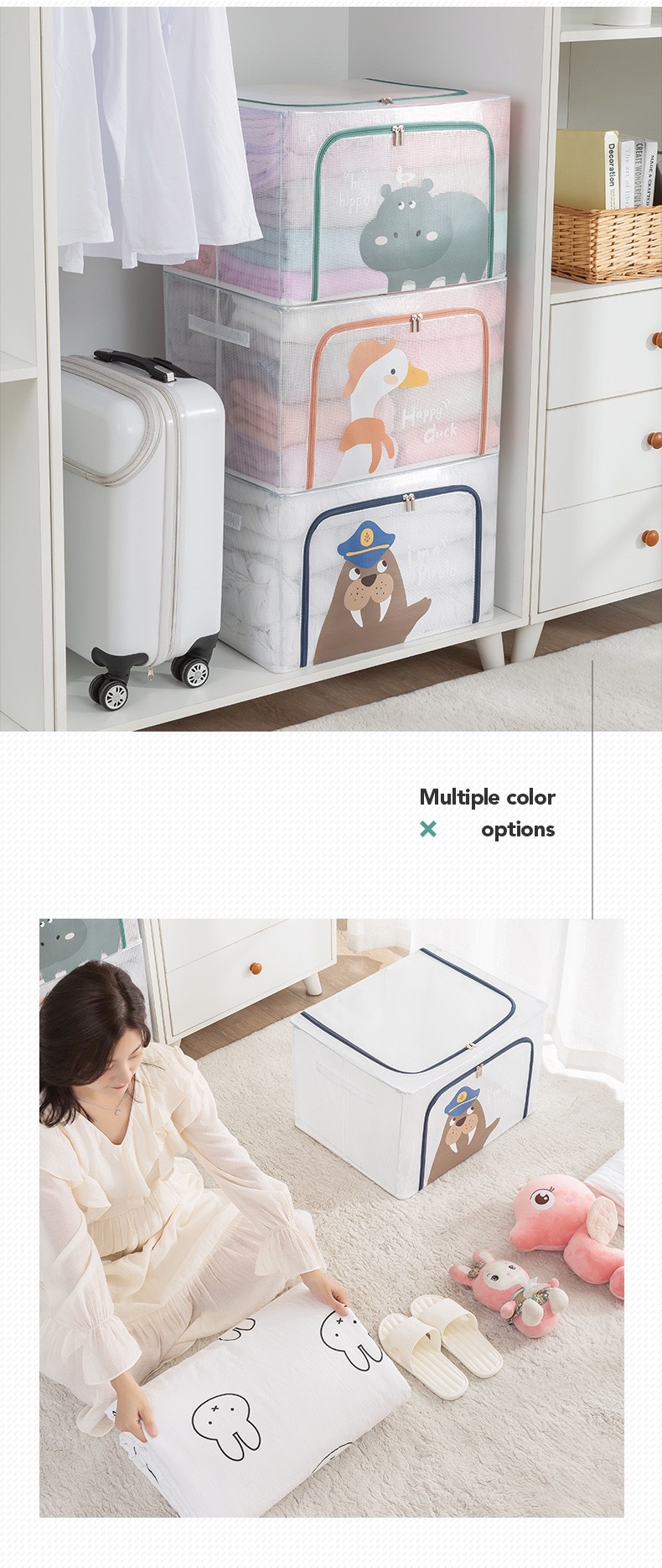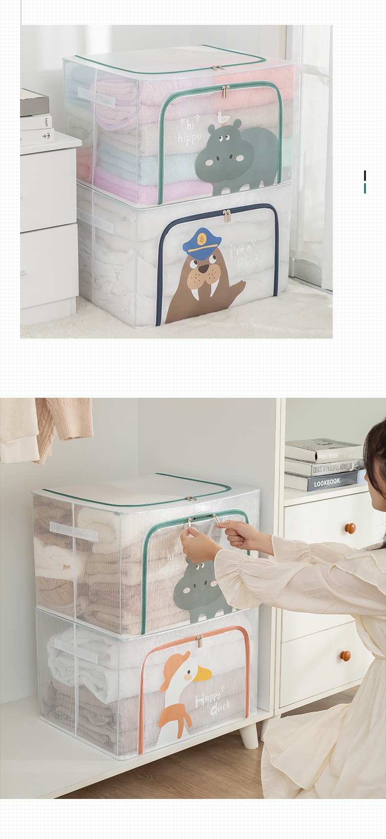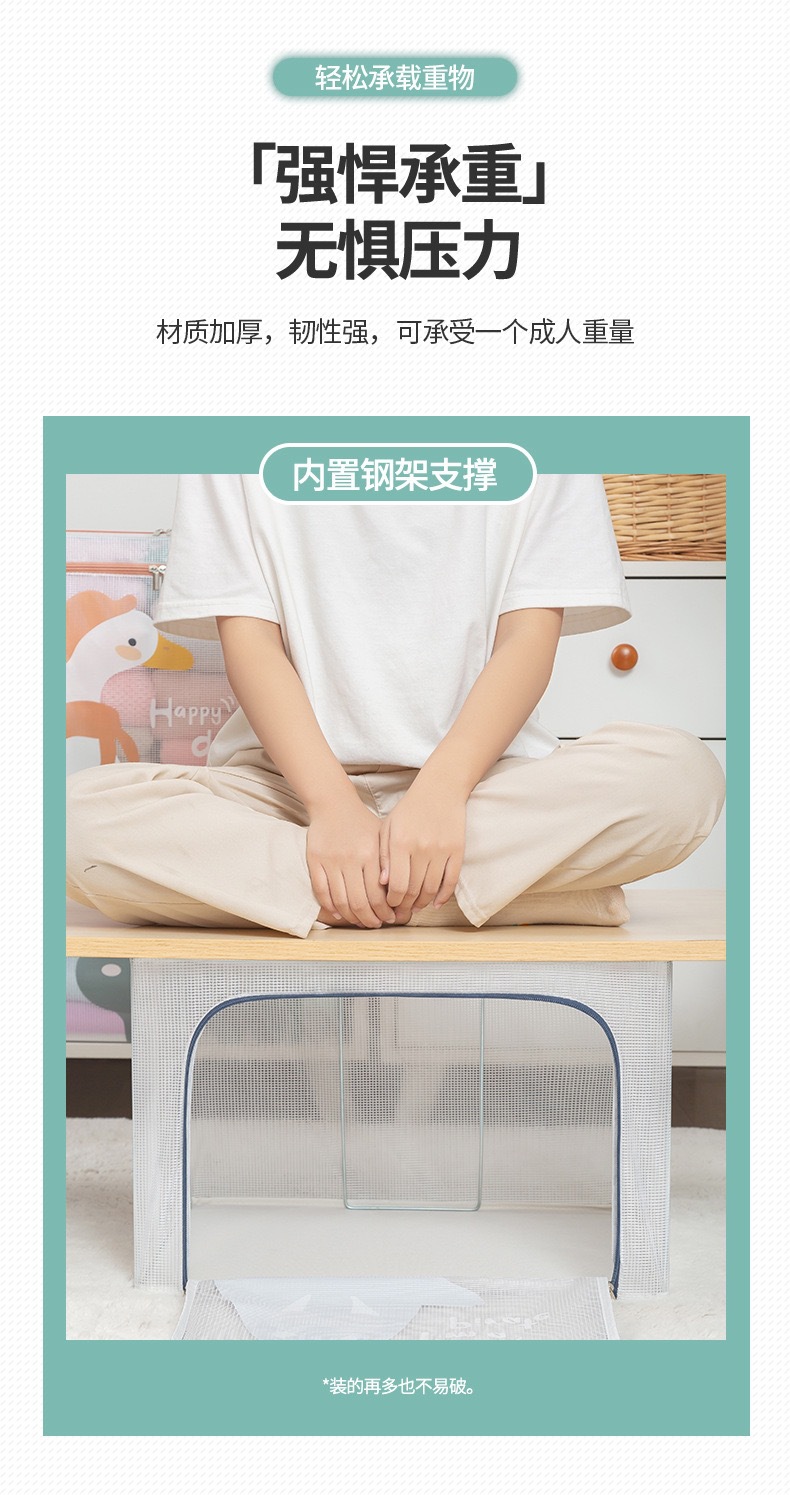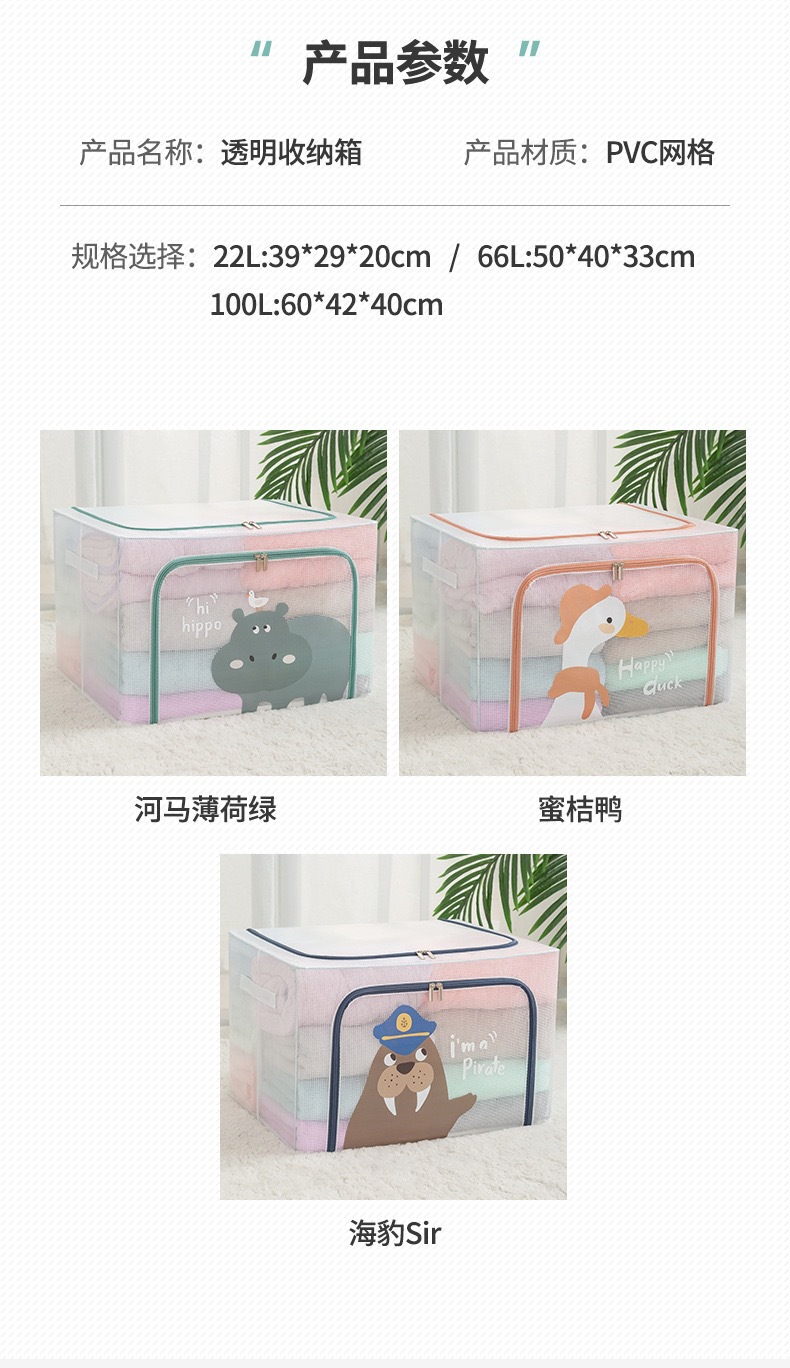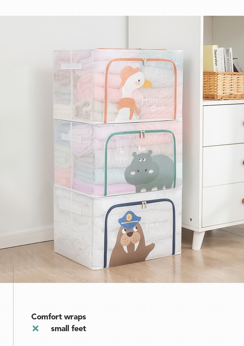만화 투명한 저장 상자 격자 강철 프레임 적합 상자 어린이 저장 상자 장난감 이불 옷 접히는 베인 상자