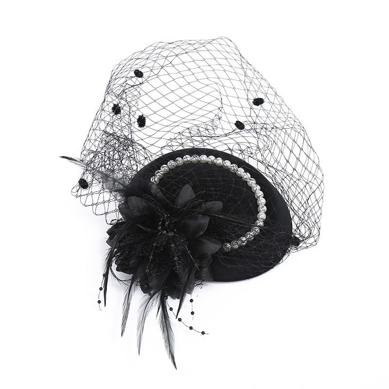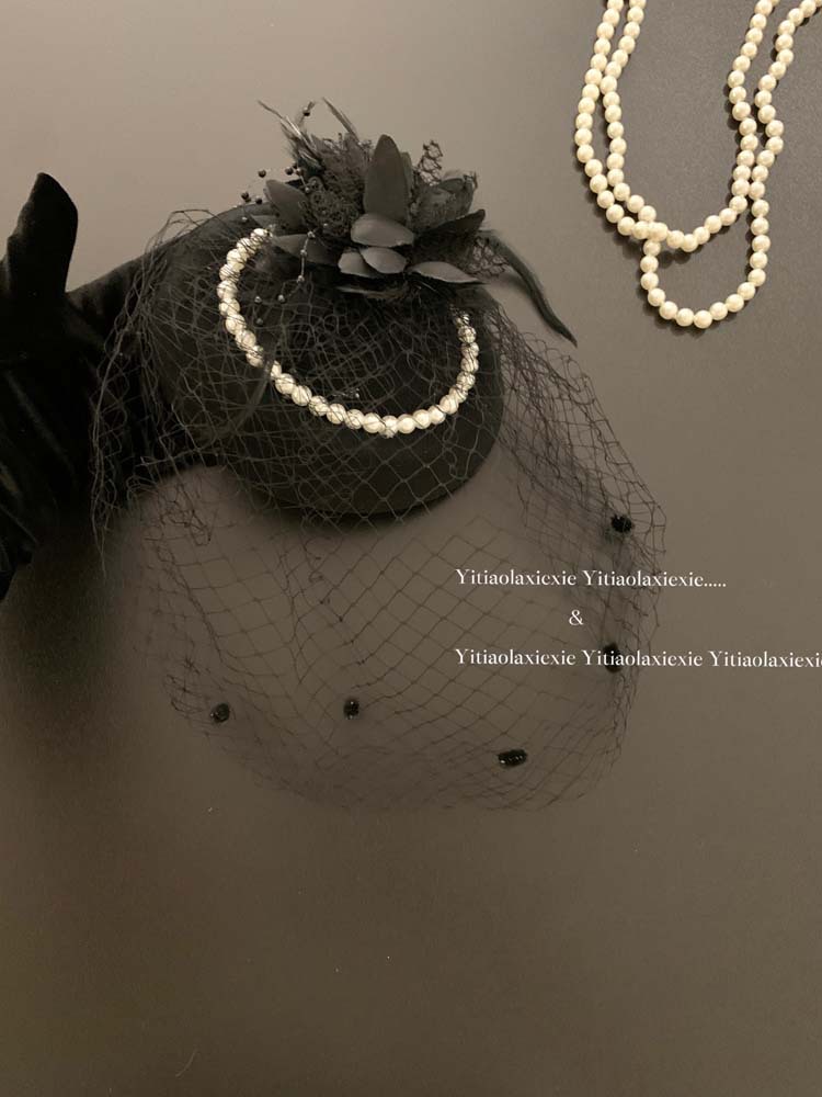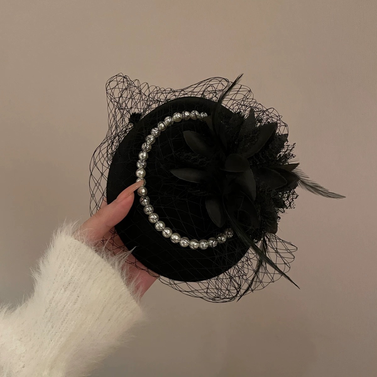 검은 헵번 스타일 작은 탑 모자 여성의 가을 및 겨울 하이 엔드 밤 상하이 레트로 청삼 헤드웨어 중화 민국 베일 연례 회의 원피스