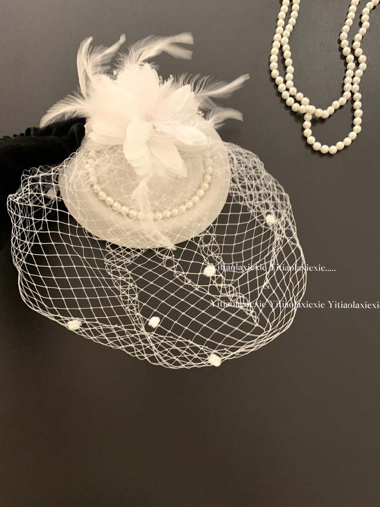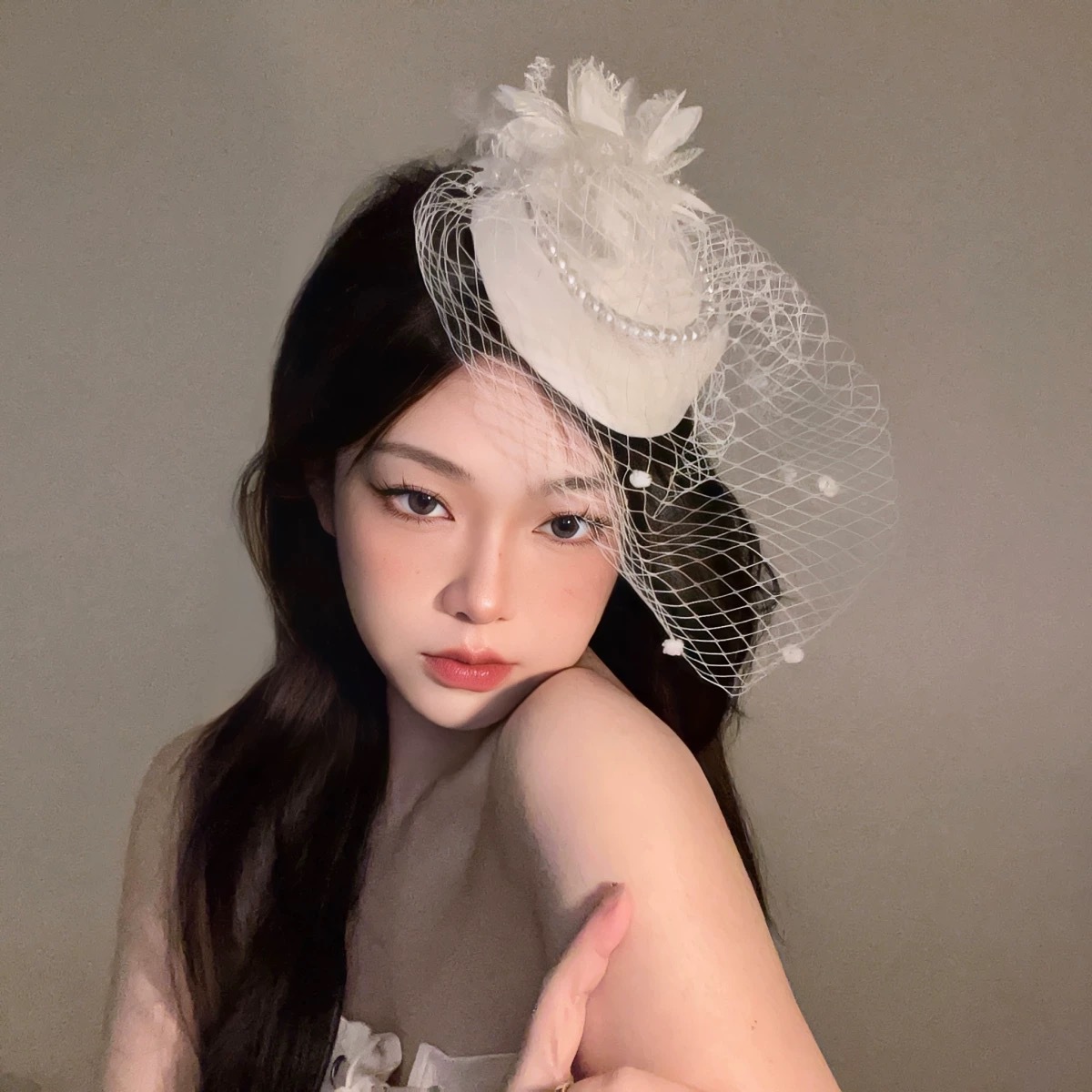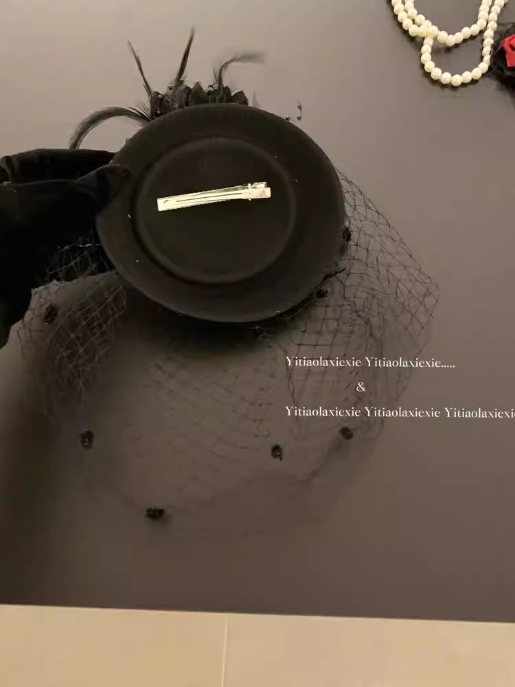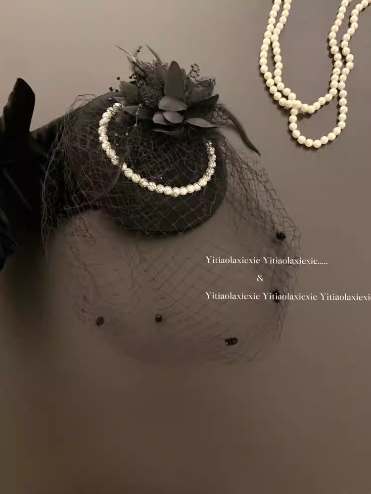 검은 헵번 스타일 작은 탑 모자 여성의 가을 및 겨울 하이 엔드 밤 상하이 레트로 청삼 헤드웨어 중화 민국 베일 연례 회의 원피스스토어 가기