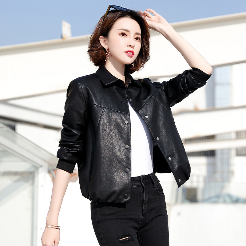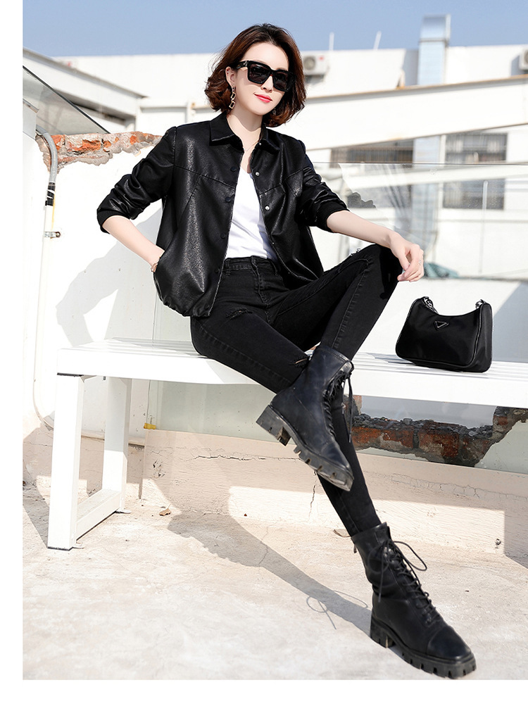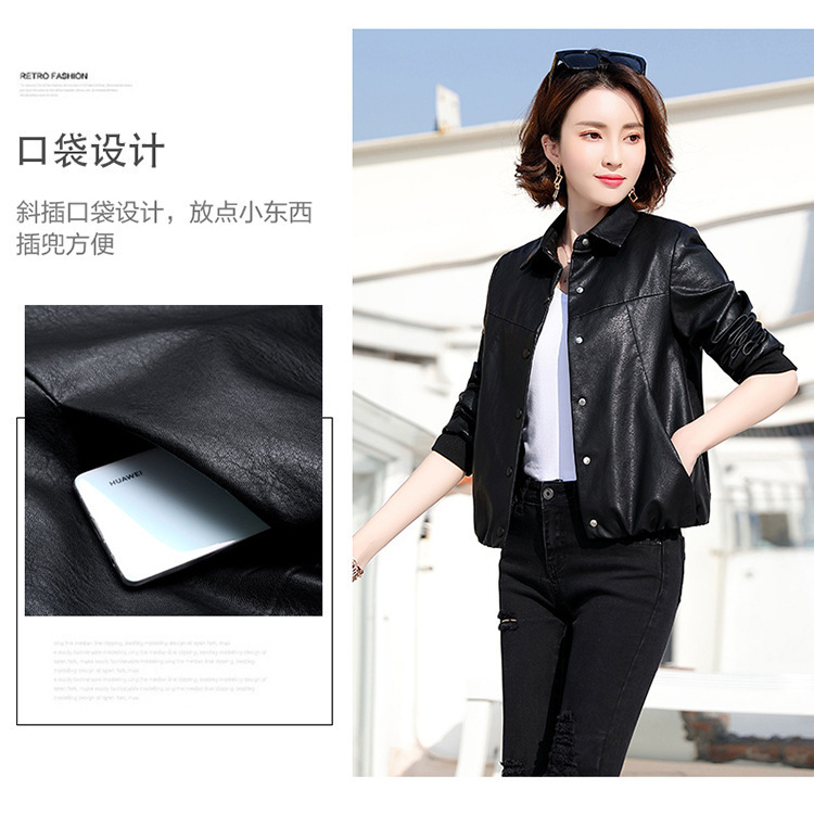 여성을위한 카운터 하이 엔드 정품 가죽 자켓 봄, 가을 새로운 Haining 양피 짧은 패션 가죽 자켓
