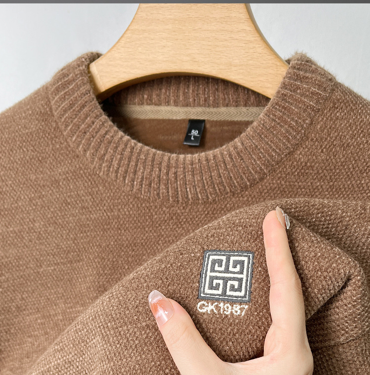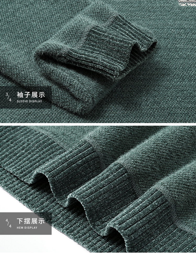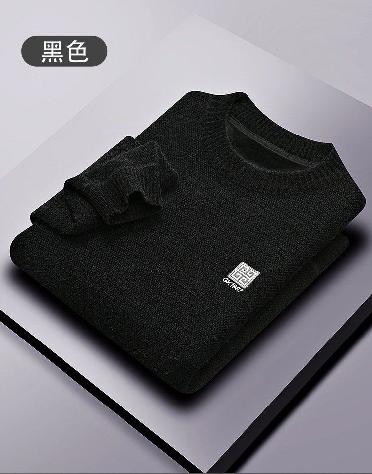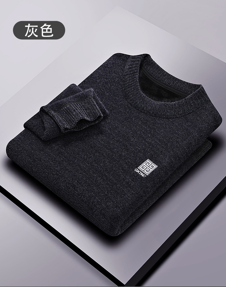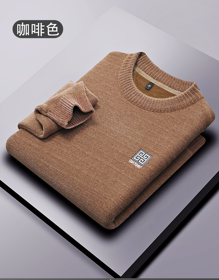 겨울 기모 스웨터 남자 원피스 벨벳 체닐 니트 스웨터 남자 라운드 넥 두꺼운 따뜻한 풀오버베이스 셔츠