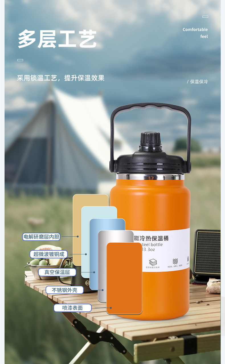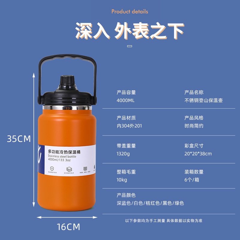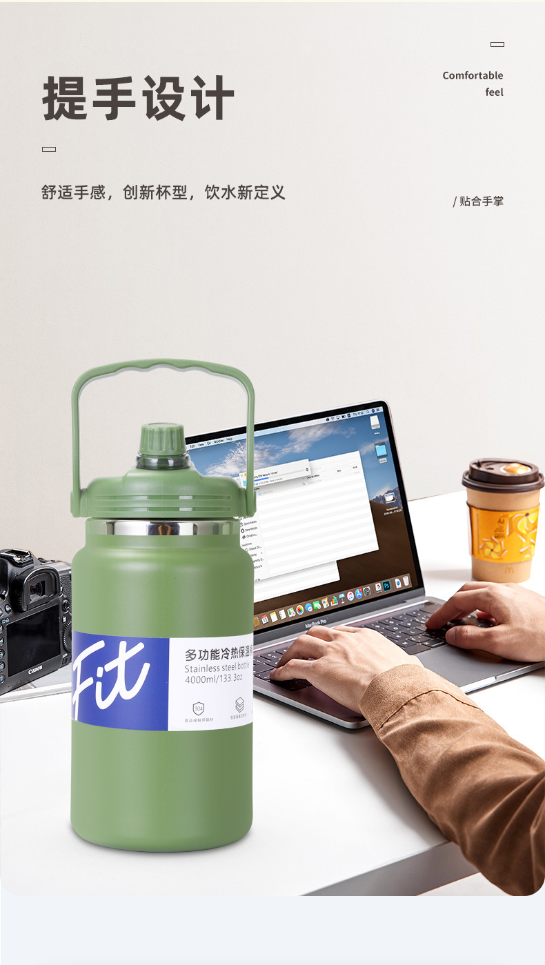 국경 간 새로운 다기능 절연 버킷 대용량 핸들 주전자 스포츠 주전자 휴대용 주전자 스테인레스 스틸 절연 컵