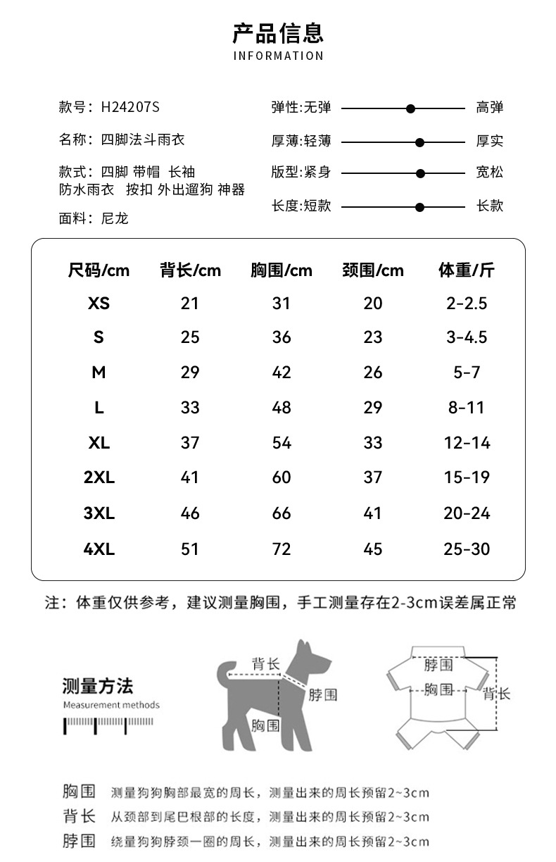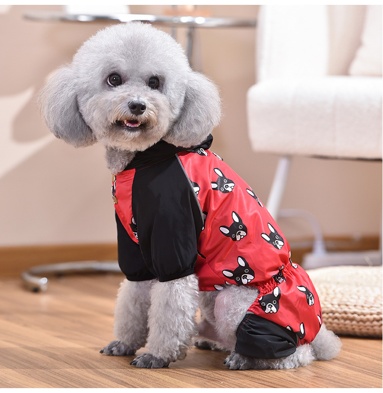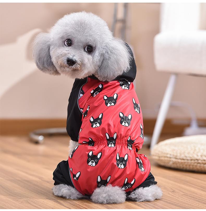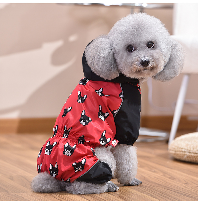붉은 애완 동물 새로운 국경 비옷 파두 네 다리 벨트 견인 풀 백 허리 안티 튀는 판초 중소 규모 개스토어 가기