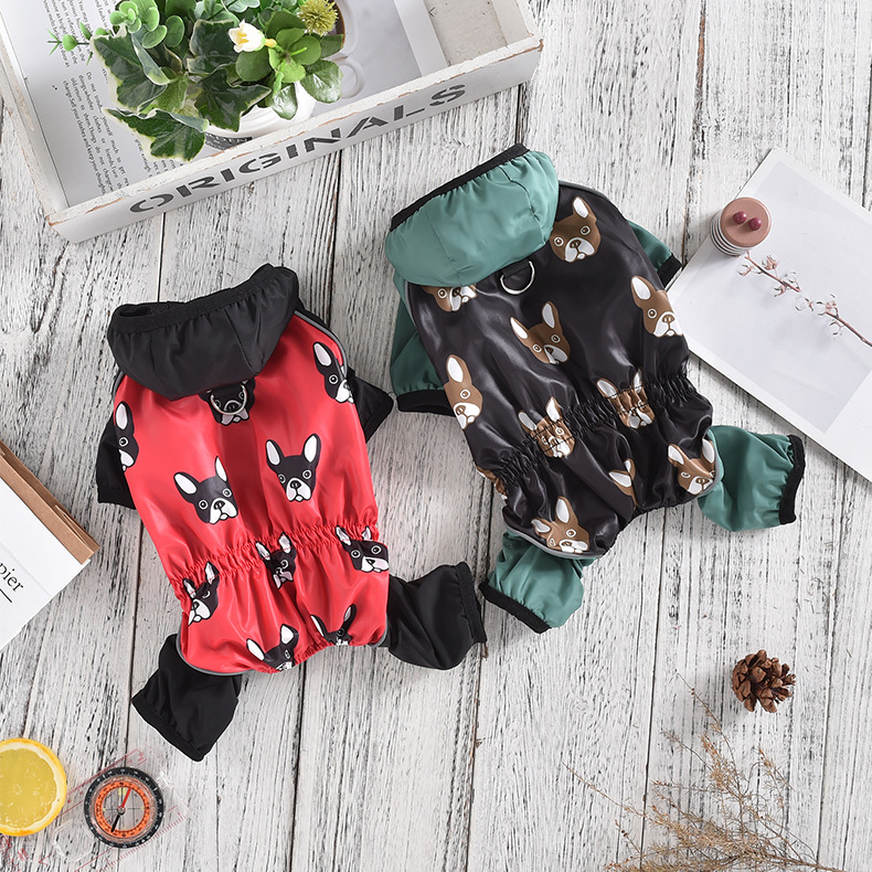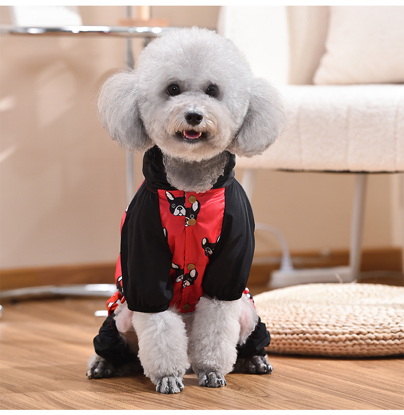 붉은 애완 동물 새로운 국경 비옷 파두 네 다리 벨트 견인 풀 백 허리 안티 튀는 판초 중소 규모 개