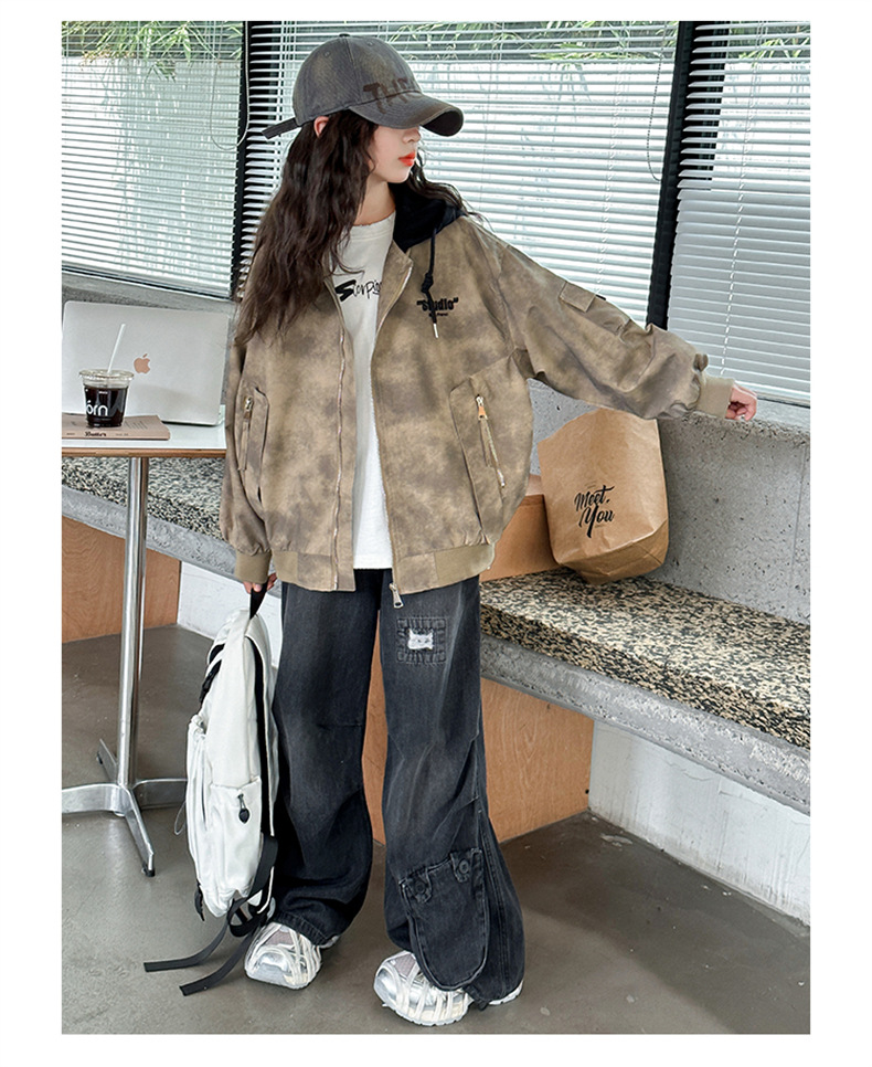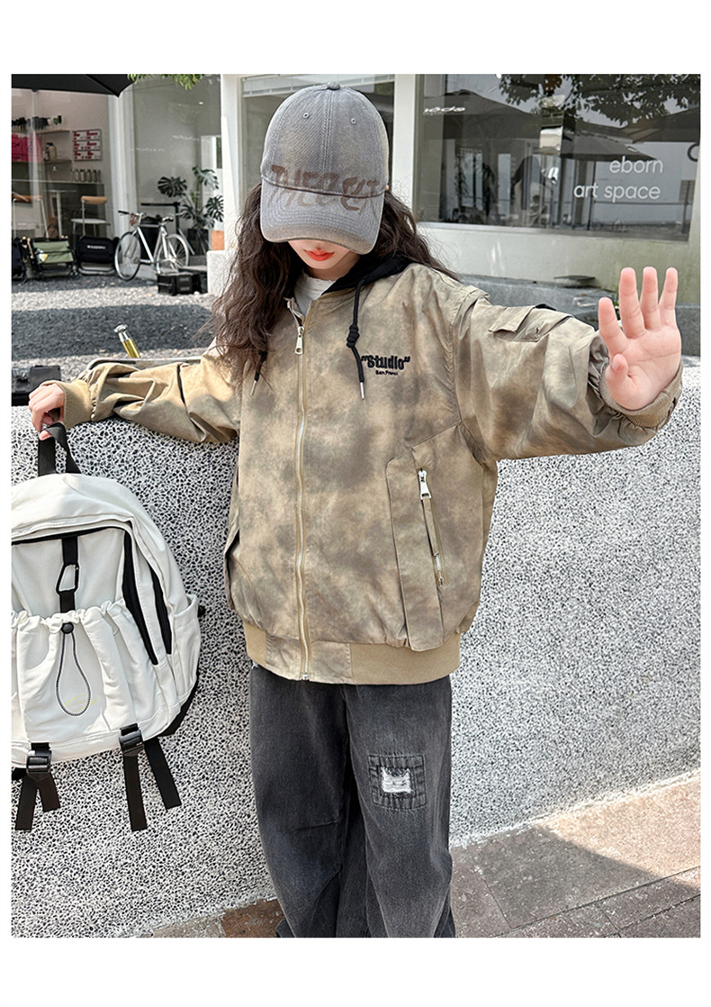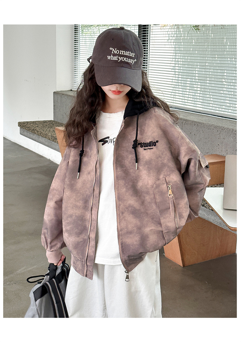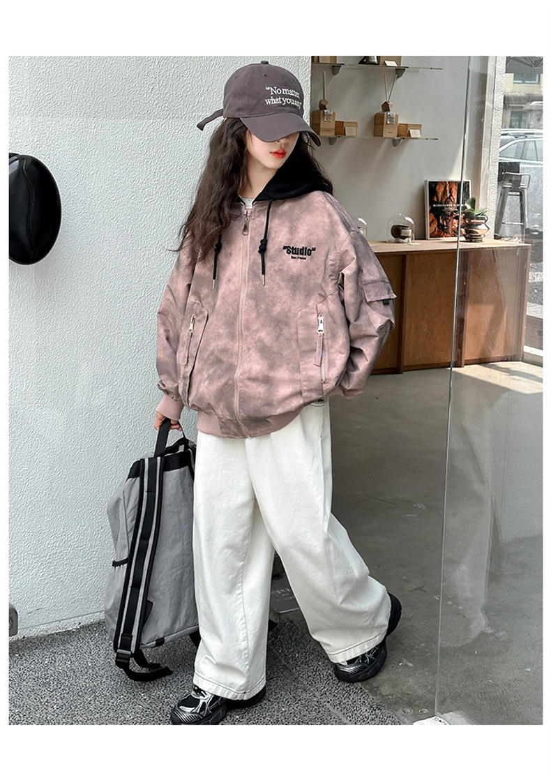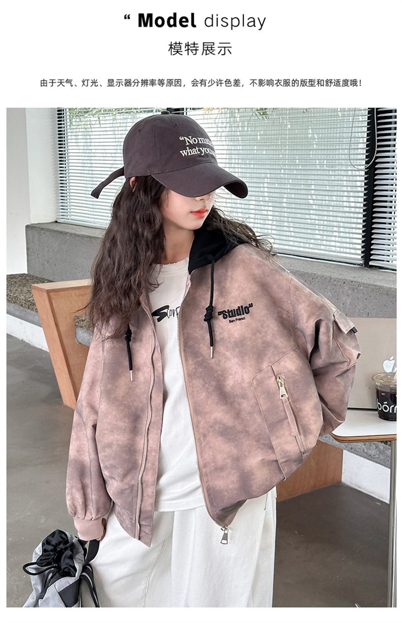 소녀 코트 가을과 겨울 서양식 스포츠 소녀 빅 키즈 더러운 파우더 후드 자켓 유행 거리 튀김 여자 야구 세트스토어 가기