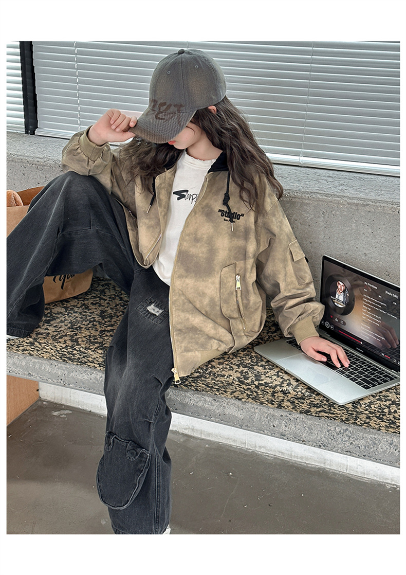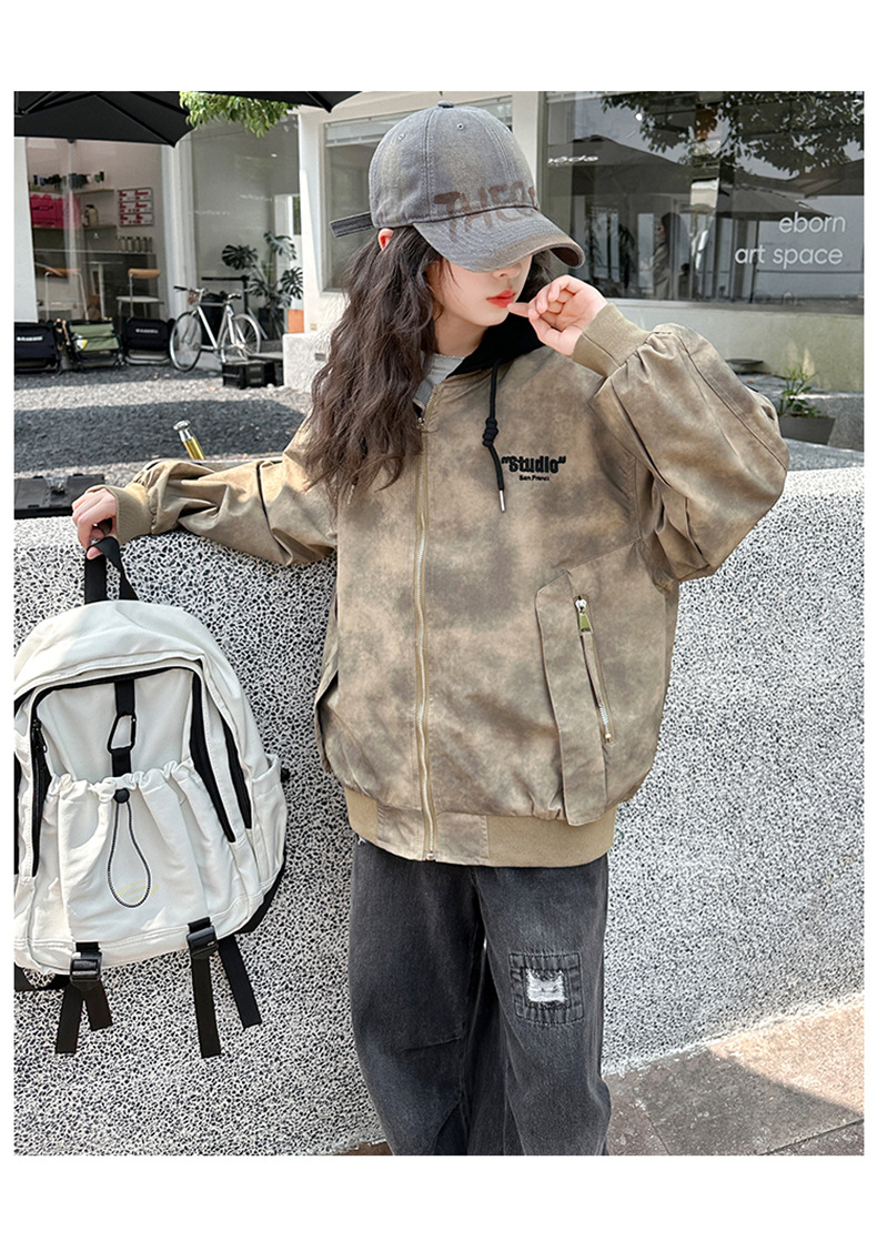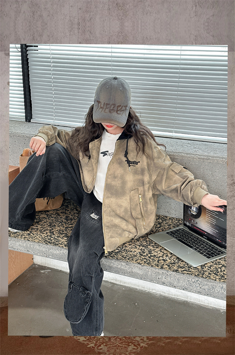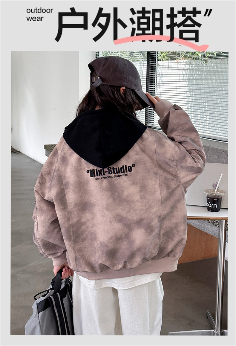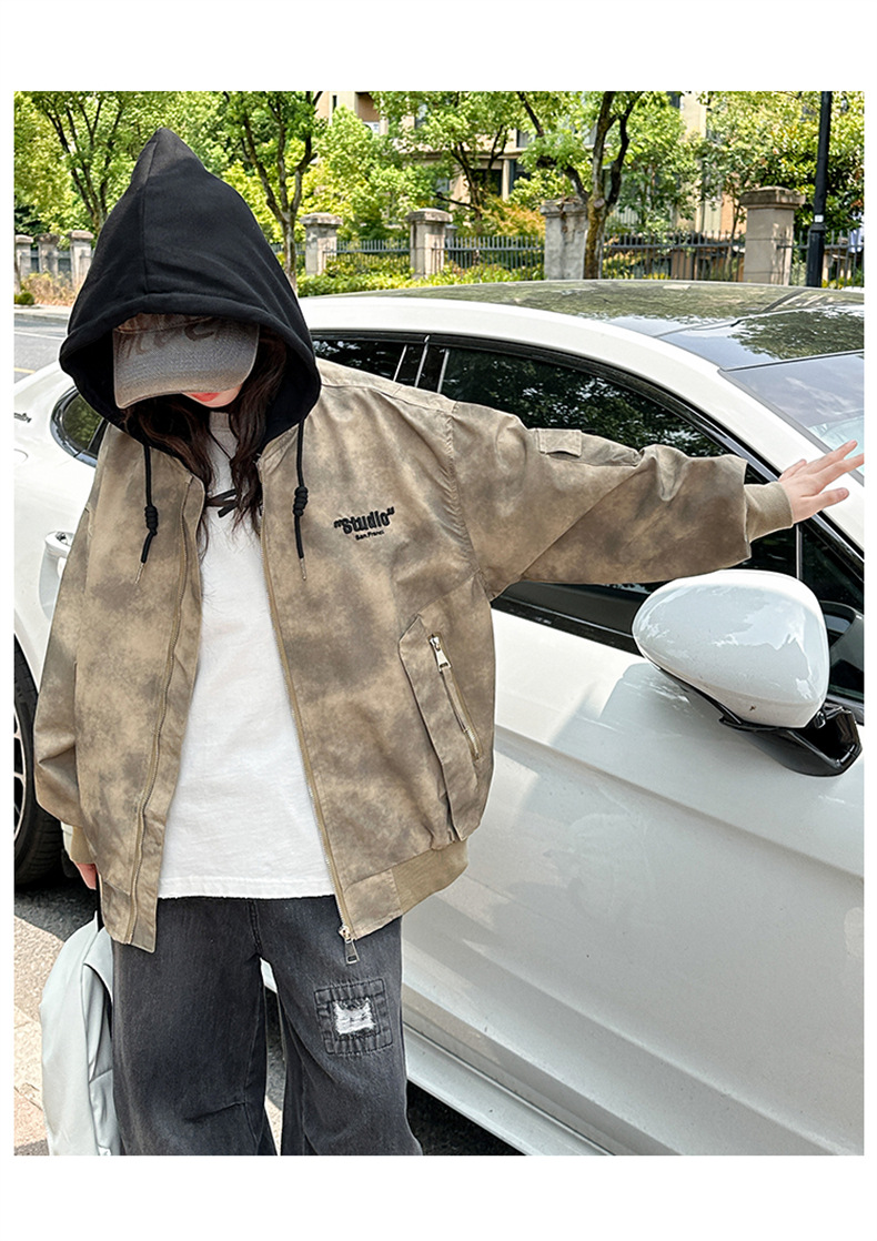 소녀 코트 가을과 겨울 서양식 스포츠 소녀 빅 키즈 더러운 파우더 후드 자켓 유행 거리 튀김 여자 야구 세트스토어 가기