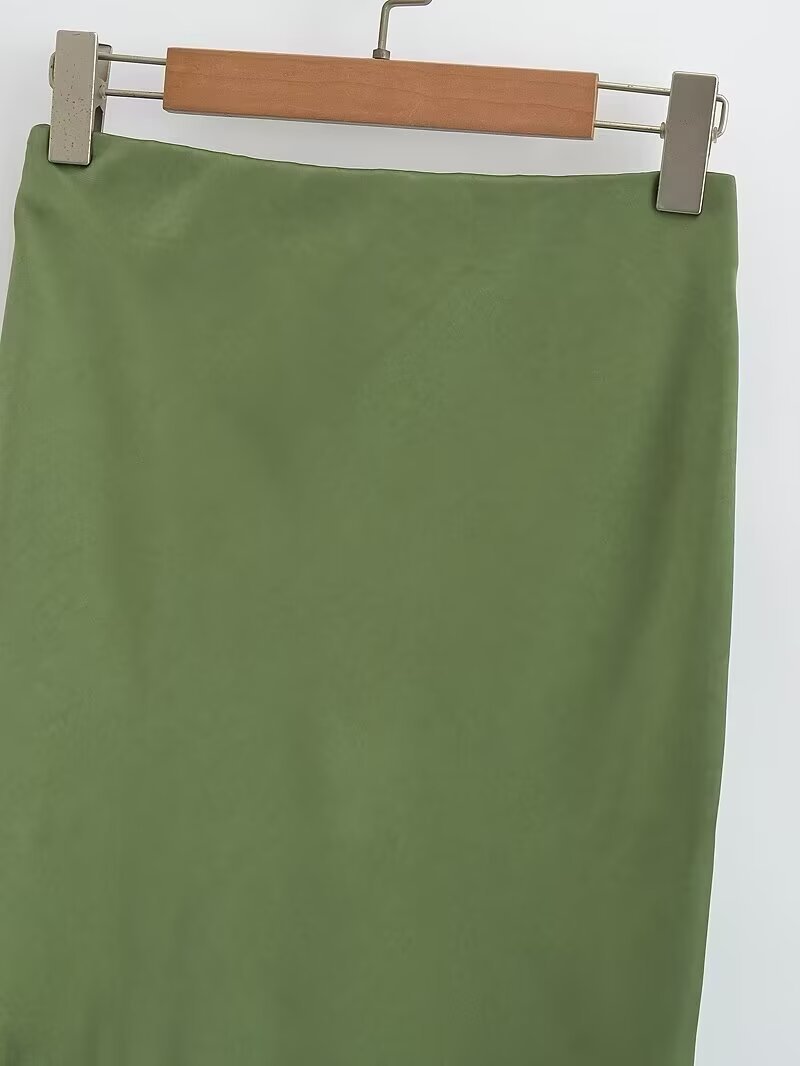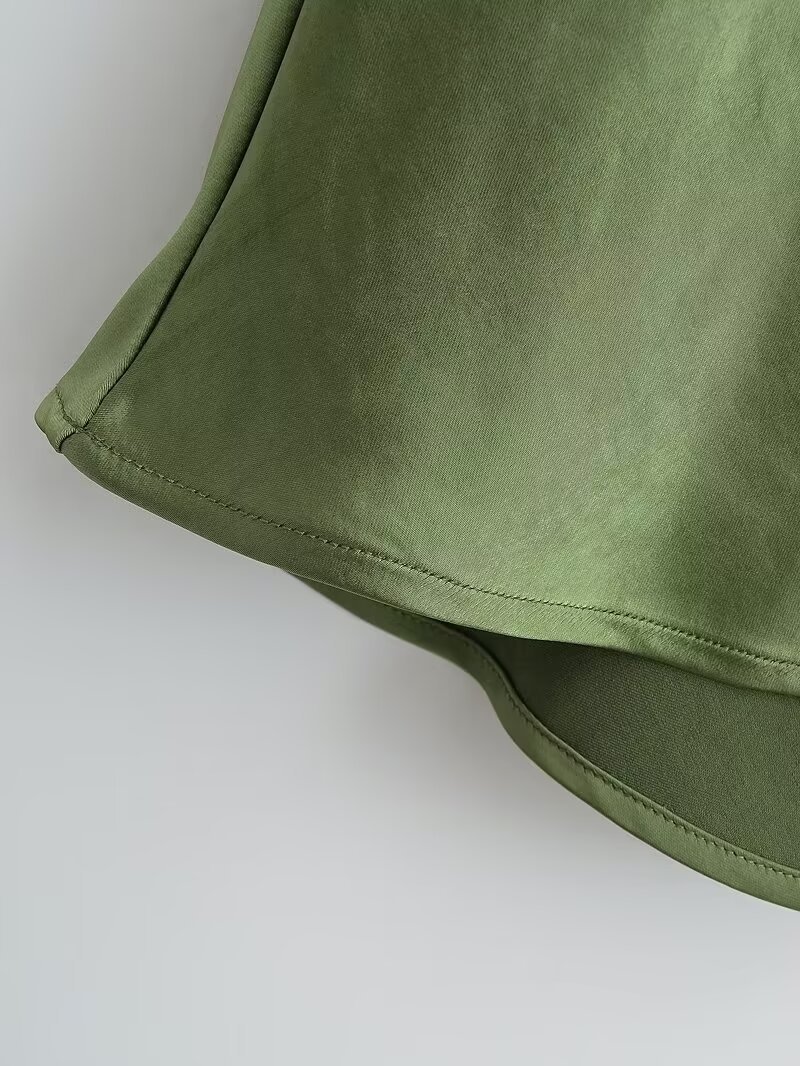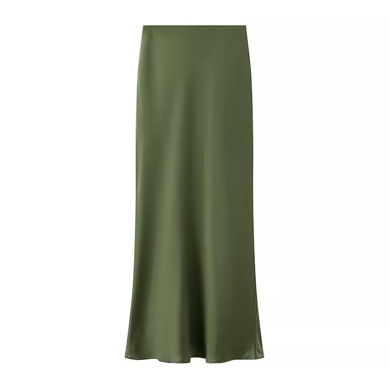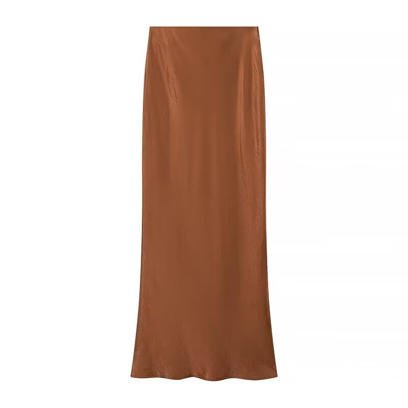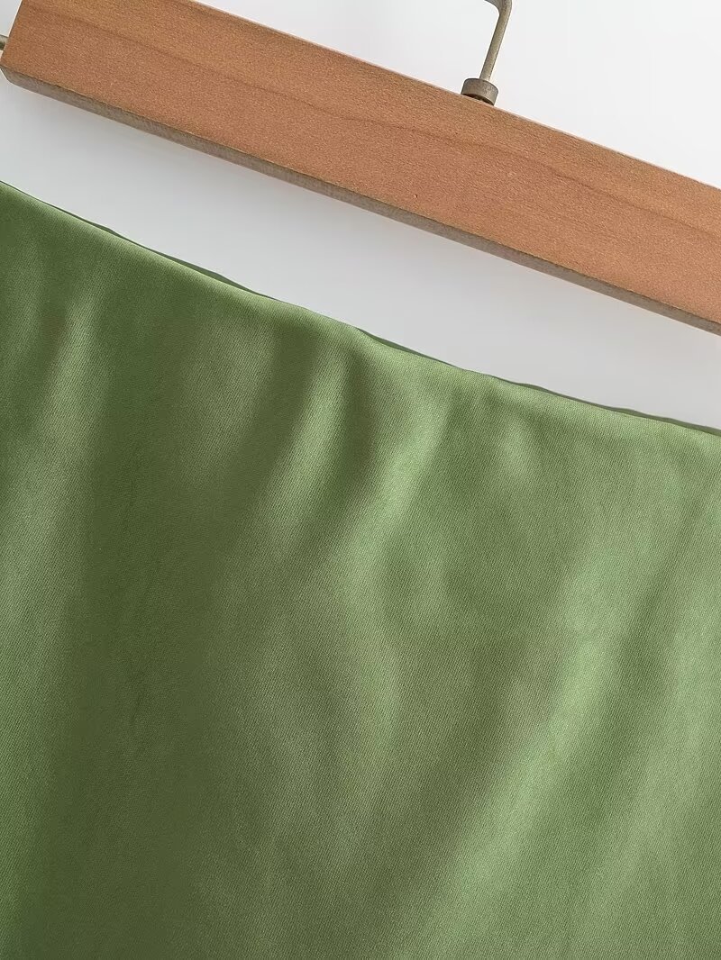 ZR 대외 무역 도매 유럽과 미국 스타일 여성 착용 새로운 프랑스 틈새 높은 허리 슬리밍 실크 새틴 질감 미니 스커트