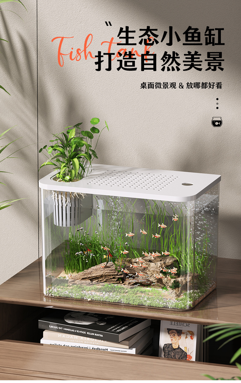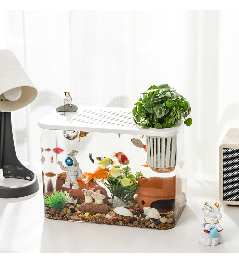 물고기 탱크 수족관 데스크탑 생태 금붕어 탱크 플라스틱 높은 투명 가정용 거실 풍경 중소 규모 게으른 물고기 탱크스토어 가기