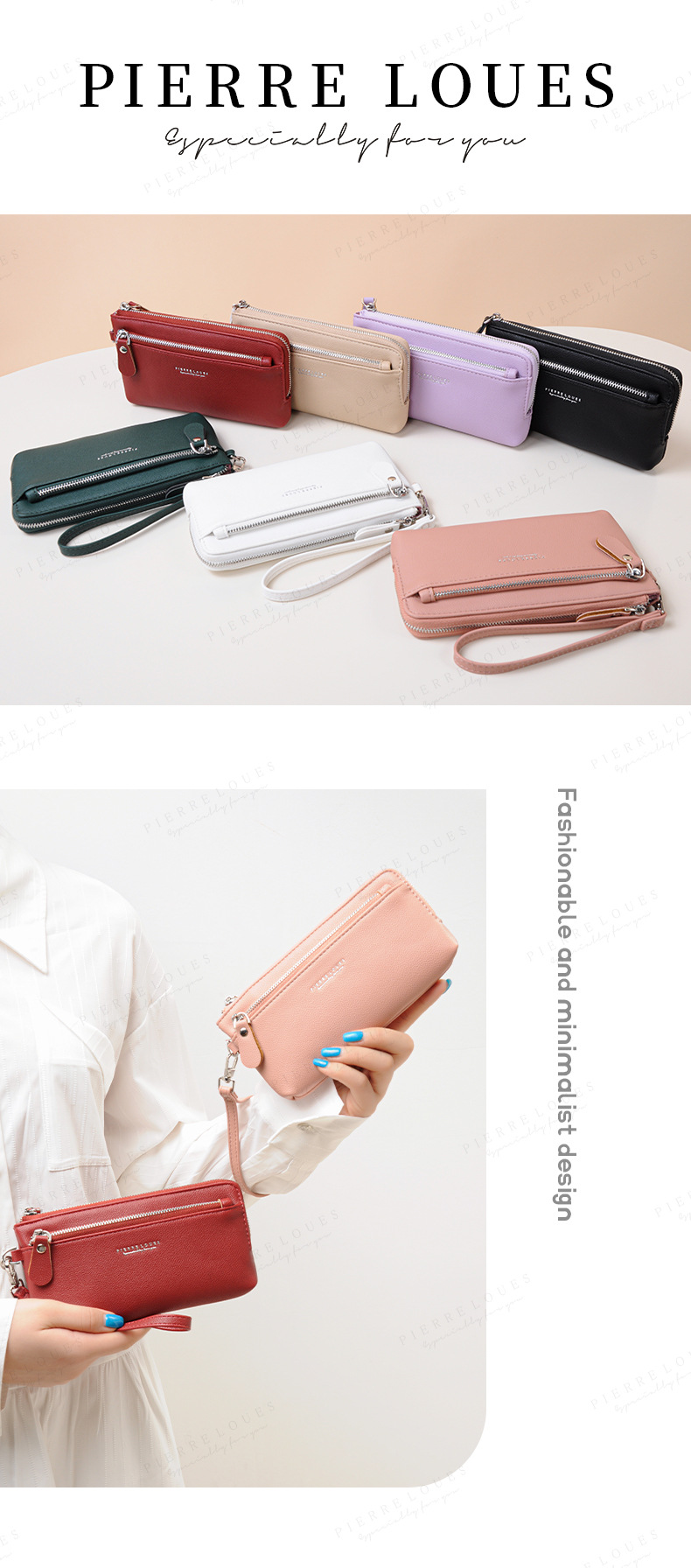 여성용 지갑 롱 여성용 하이 엔드 크로스 보더 코인 지갑 키 체인 휴대 전화 지갑 패션 더블 지퍼 클러치 백