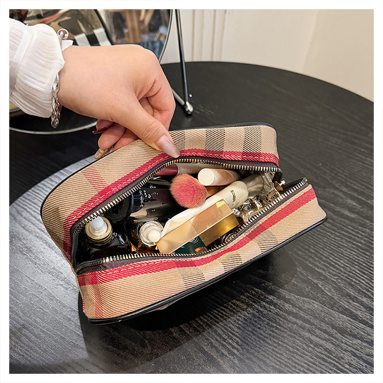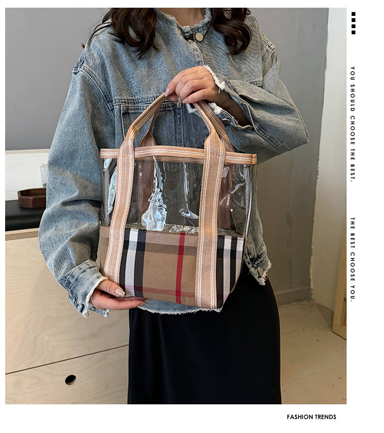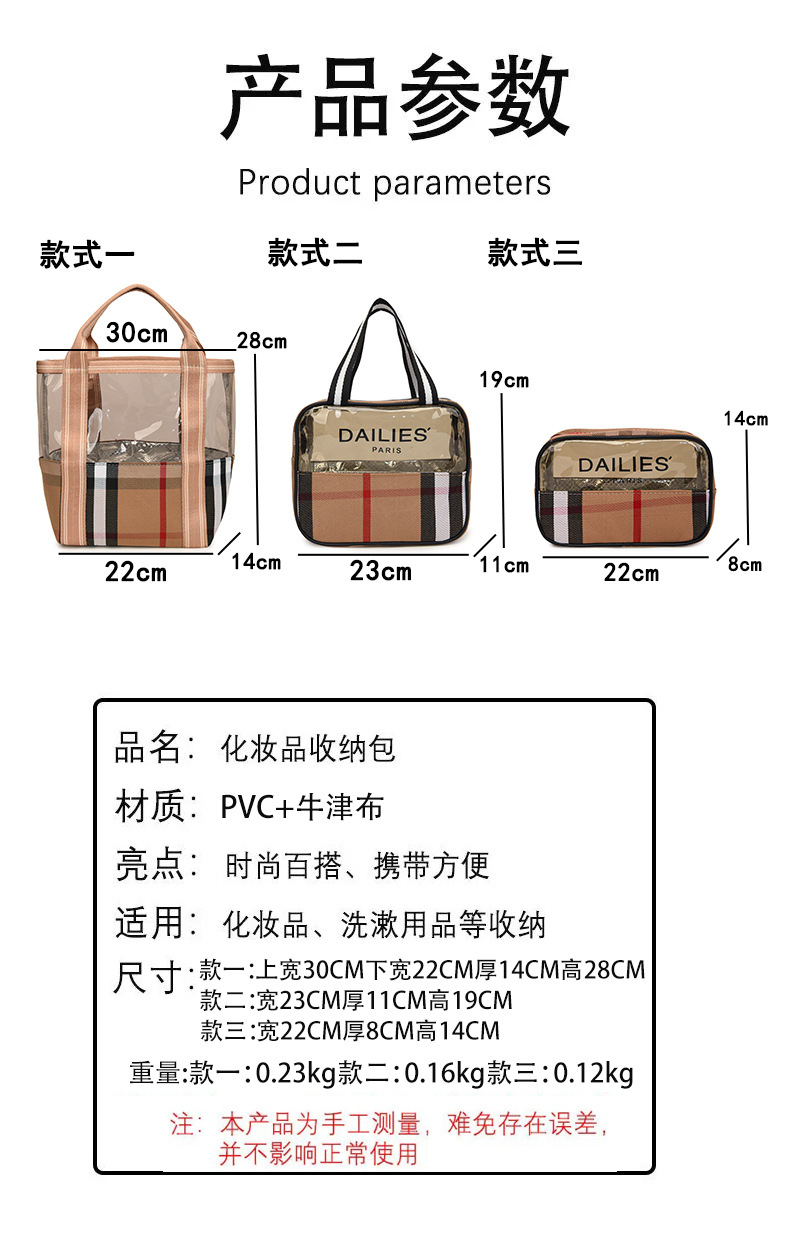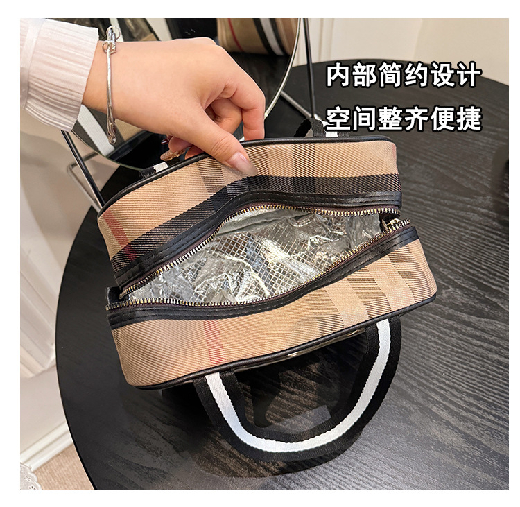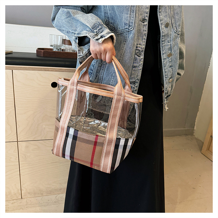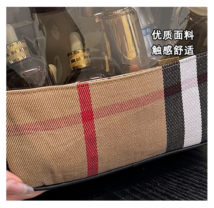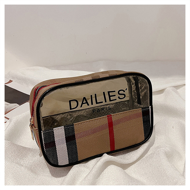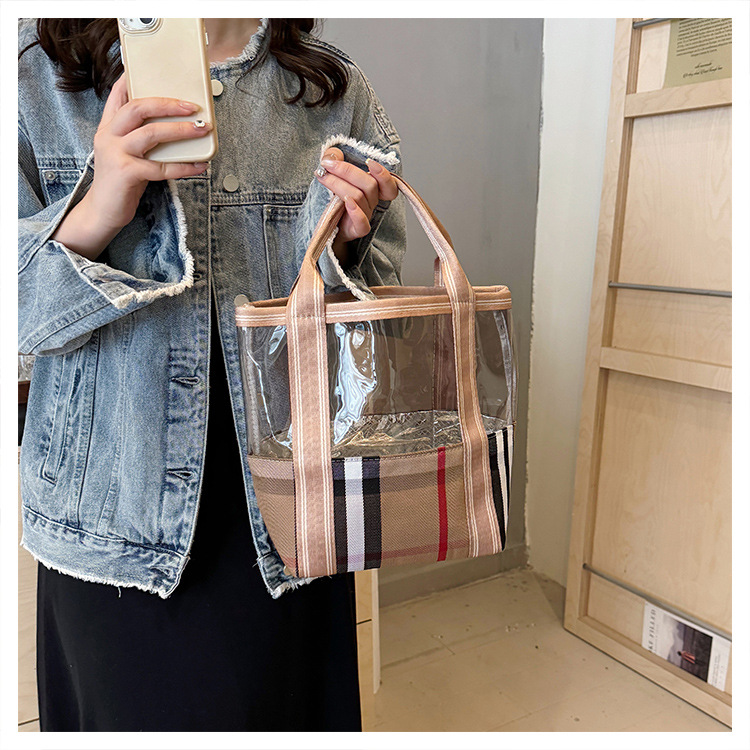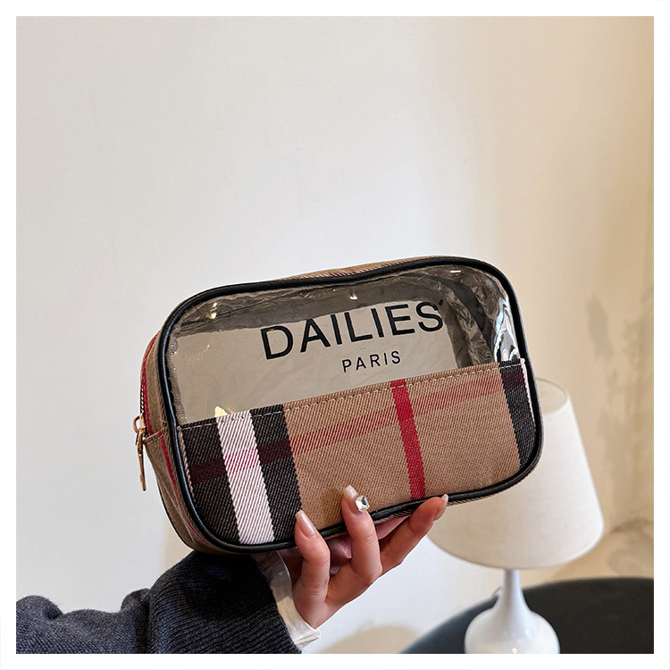 편리한 여행 보관 휴대용 격자 무늬 투명한 화장품 가방 접이식 대용량 메쉬 핸드백 도시락 가방 도매스토어 가기