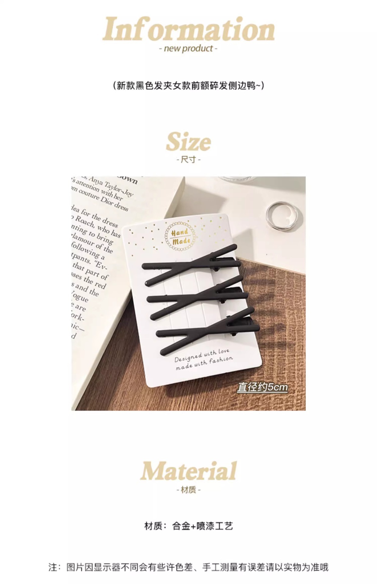 2024 새로운 블랙 헤어 클립 여성의 부러진 프론트 헤어 사이드 덕빌 클립 성인 헤어 액세서리 간단한 한 단어 클립스토어 가기