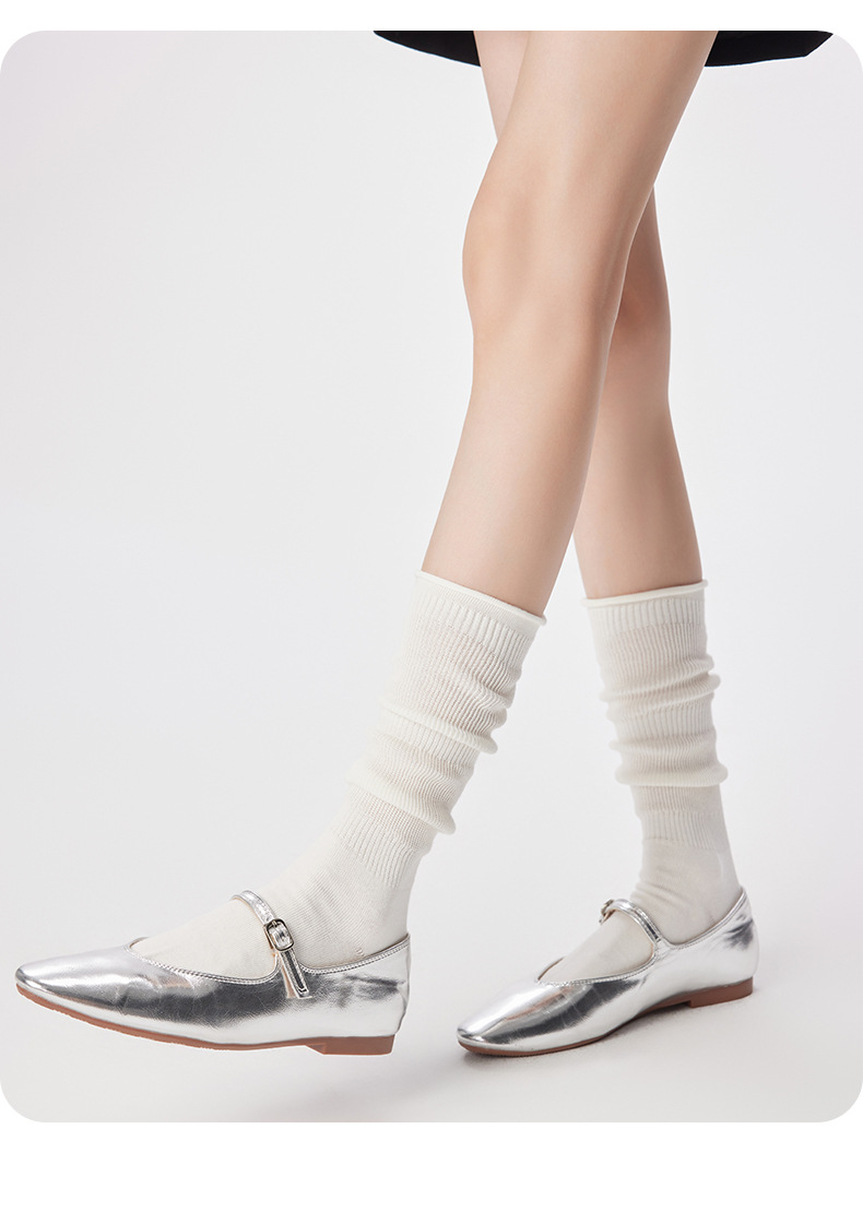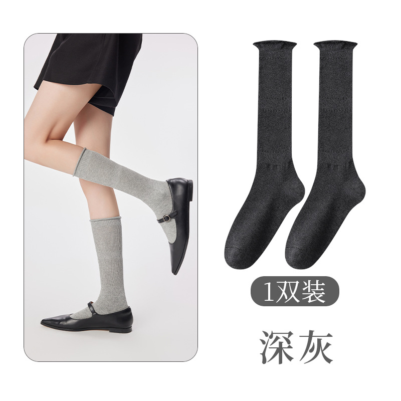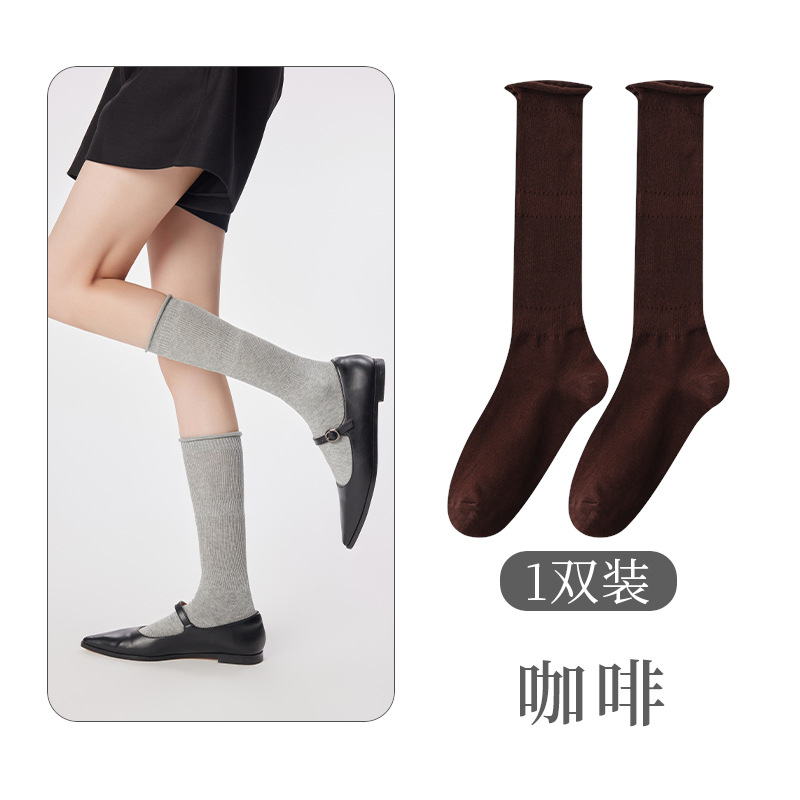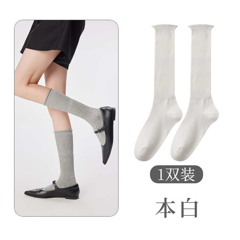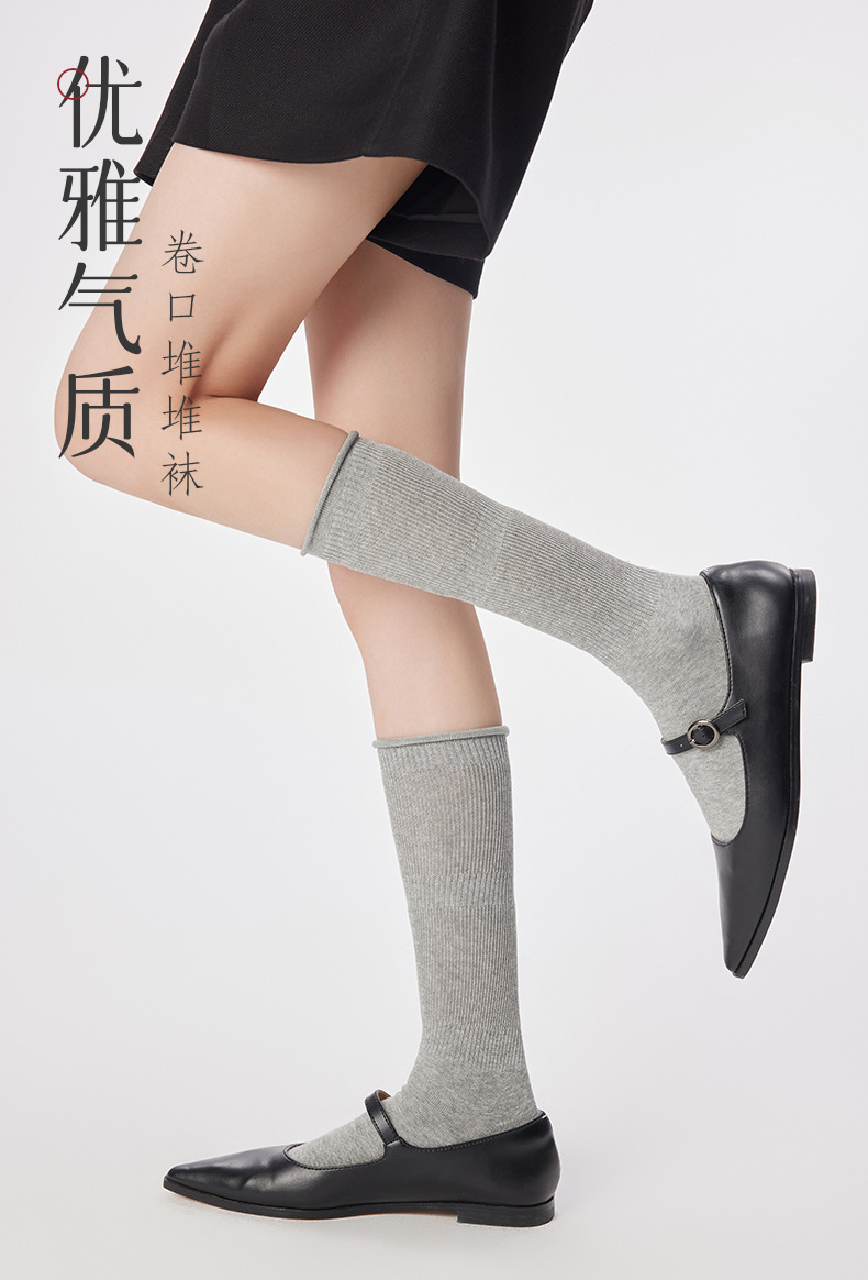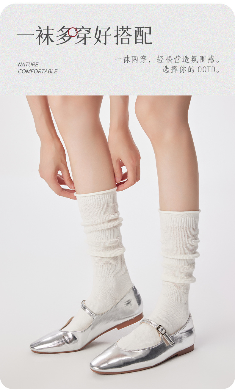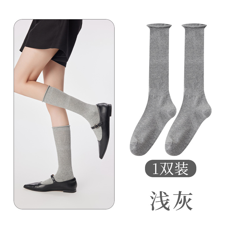 여성용 발 양말 솔리드 컬러 일본 스타일 롤업 중간 길이 양말 Ins 트렌디 한 발레 스택 양말 통기성 면 얇은 다리 스타킹스토어 가기