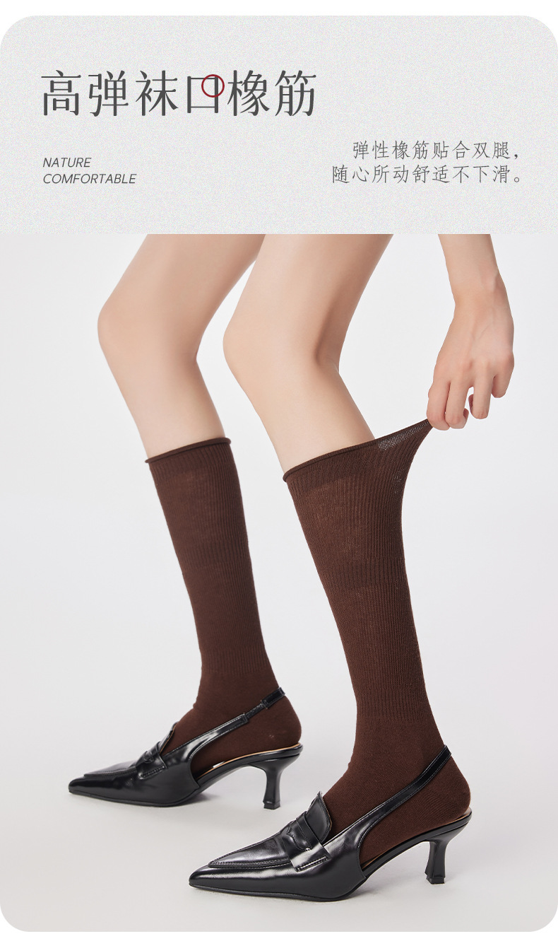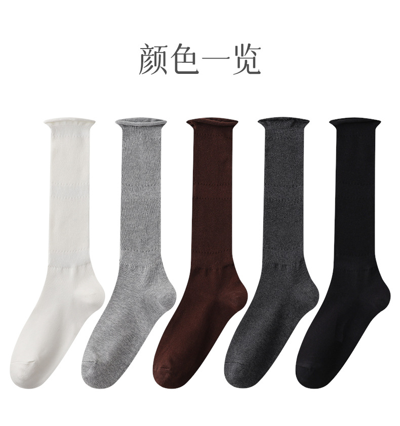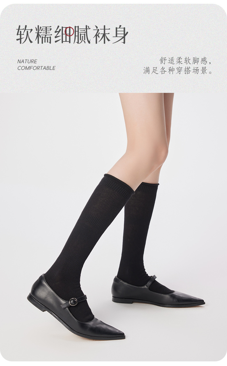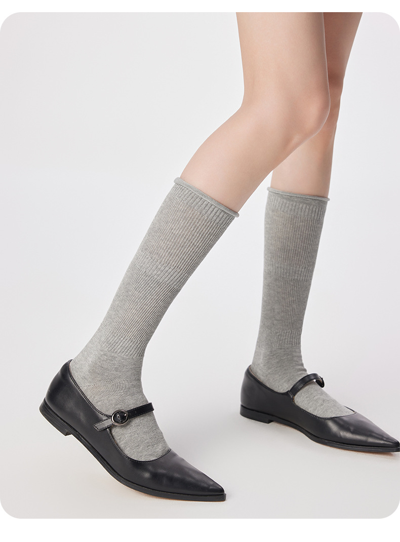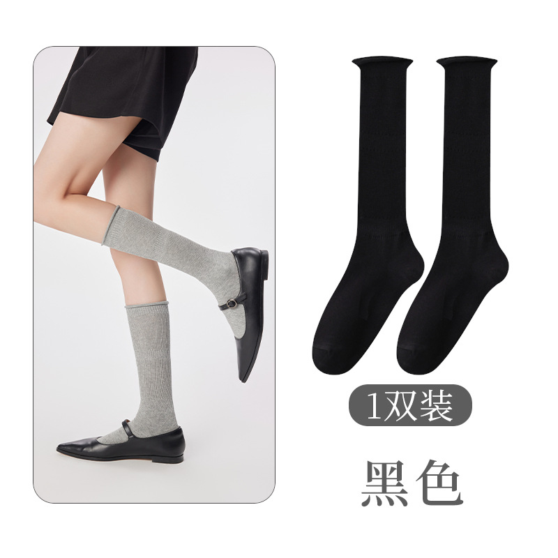 여성용 발 양말 솔리드 컬러 일본 스타일 롤업 중간 길이 양말 Ins 트렌디 한 발레 스택 양말 통기성 면 얇은 다리 스타킹