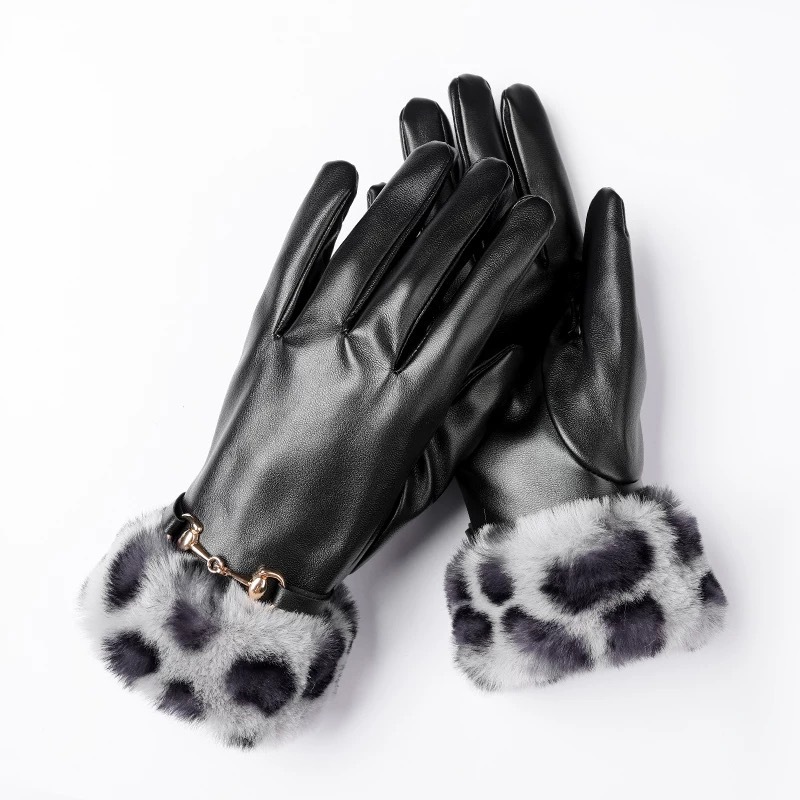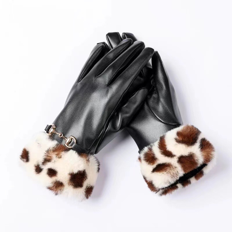 장갑 여성의 겨울 PU 모피 입 기모 야외 방풍 승마 터치 스크린 냉장 따뜻한 두꺼운 운전 가죽