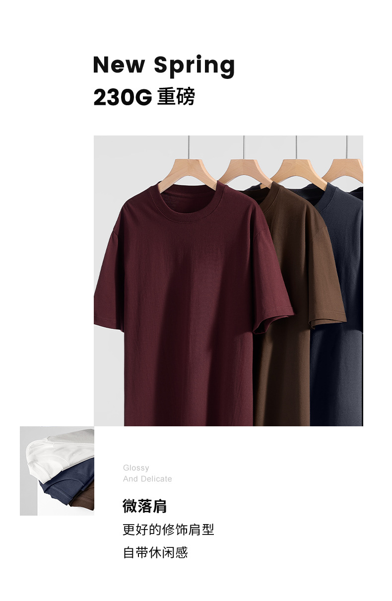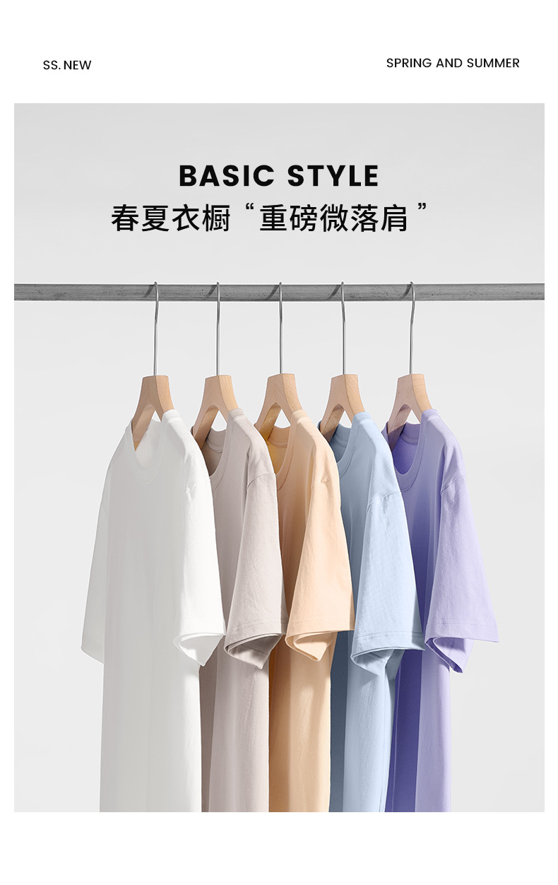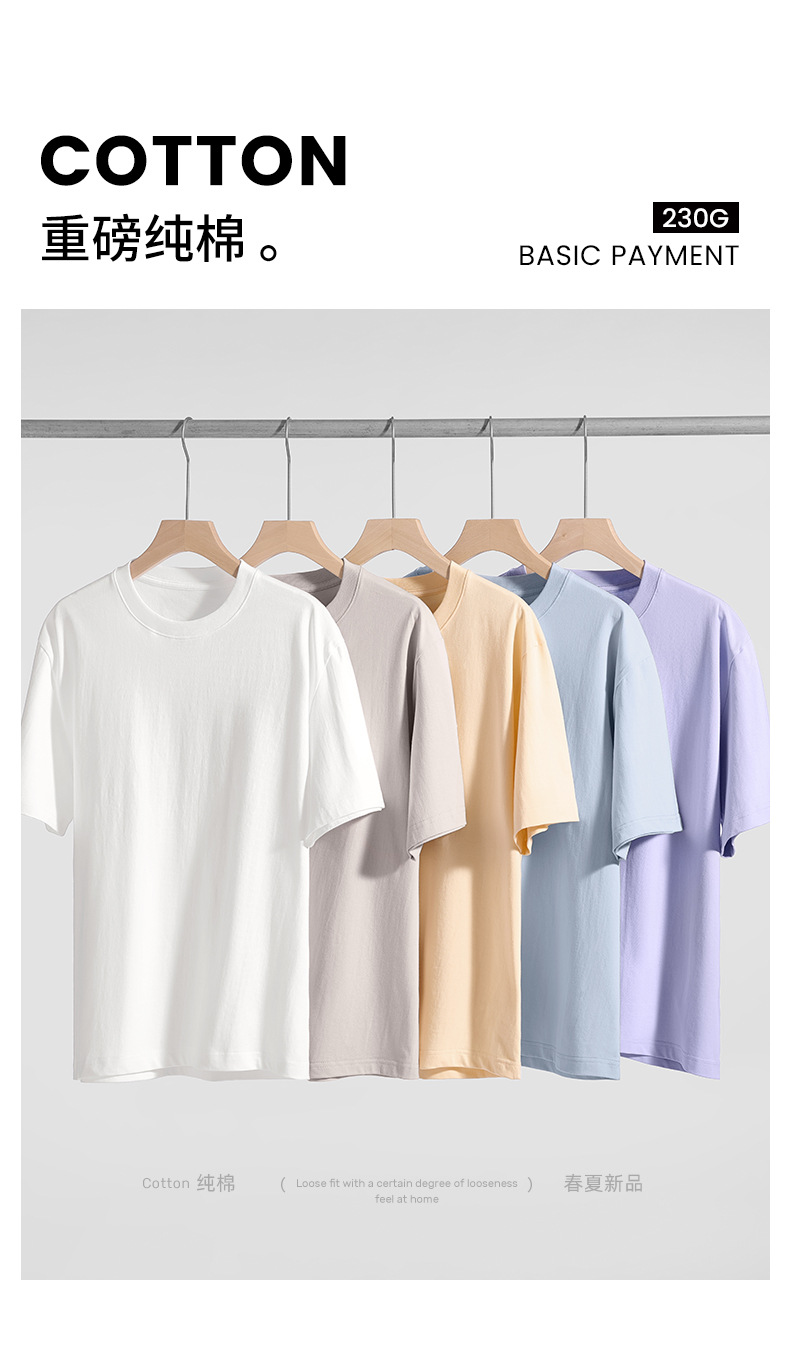 산하이 고래 | 여름 새로운 면 짧은 소매 남성용 티셔츠 간단한 230g 크루 넥 탑베이스 셔츠 느슨한 남성복