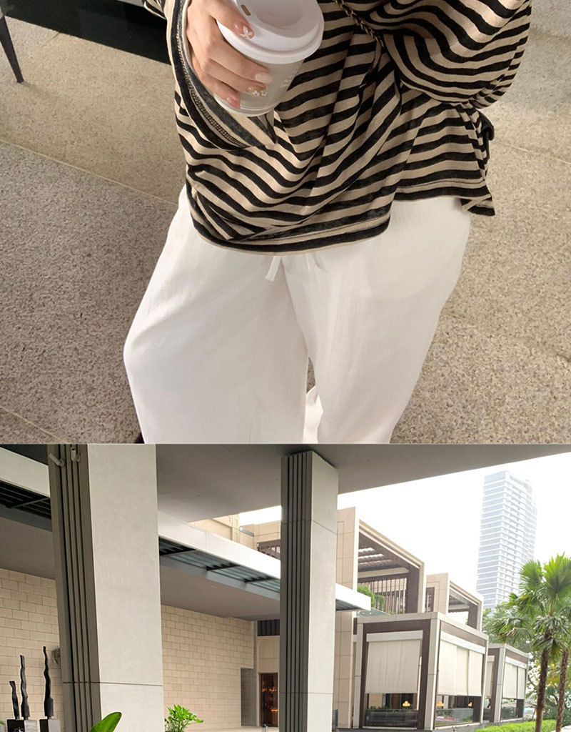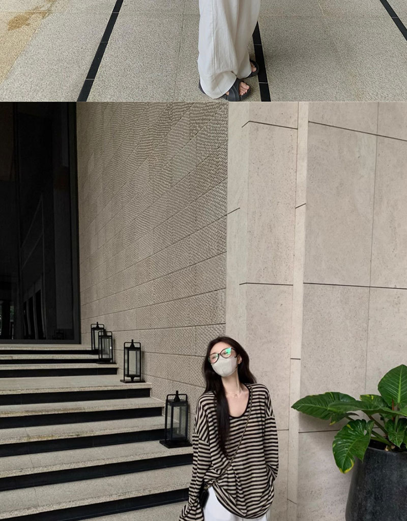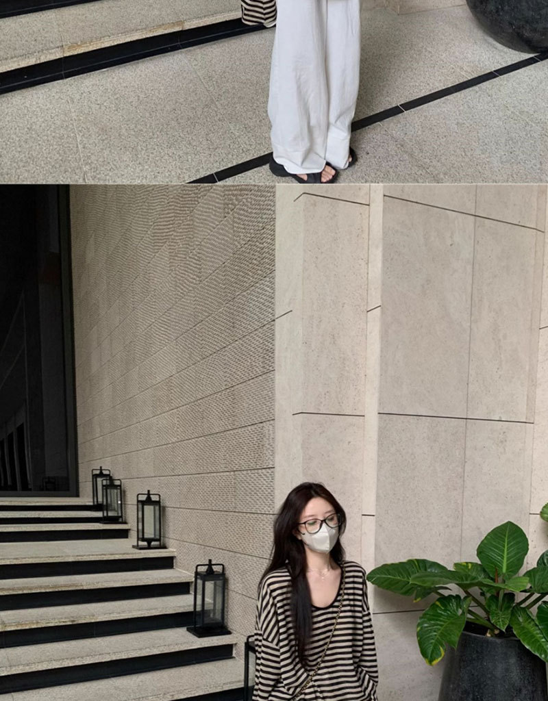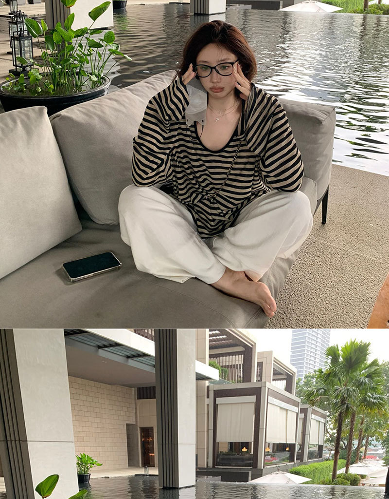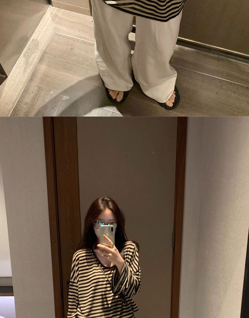 뜨거운 소녀 줄무늬 티셔츠 여성의 봄과 가을 2024 새로운 느슨한 U 칼라 미국 긴팔 티셔츠 얇은 외부 탑스토어 가기