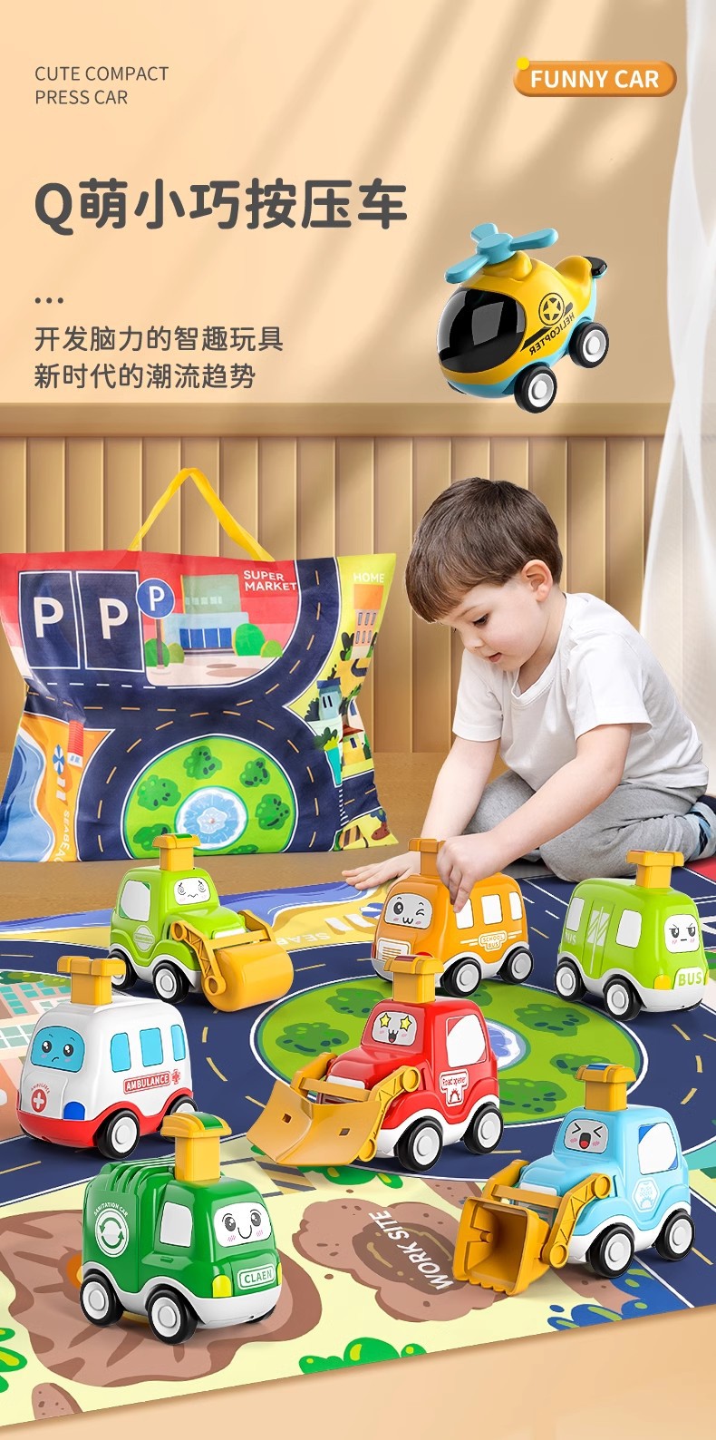 2024 새로운 어린이 프레스 장난감 자동차 관성 백 포스 아기 6 소년 자동차 아기 1-3 세 소녀 퍼즐스토어 가기
