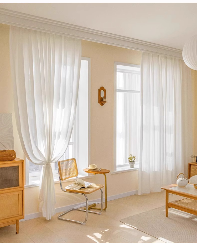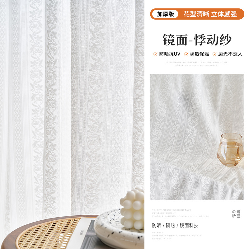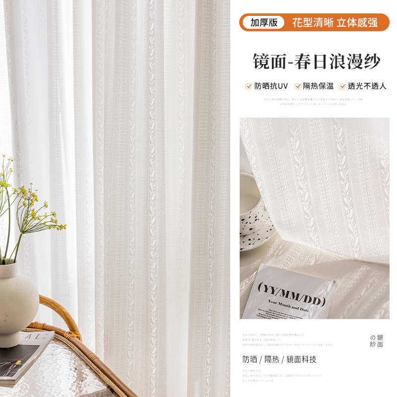 화이트 거즈 커튼 선스크린 단열 창 거즈 미러 거즈 발코니 투명하고 불 침투성 베이 창 거실 침실 화이트 거즈 훅스토어 가기