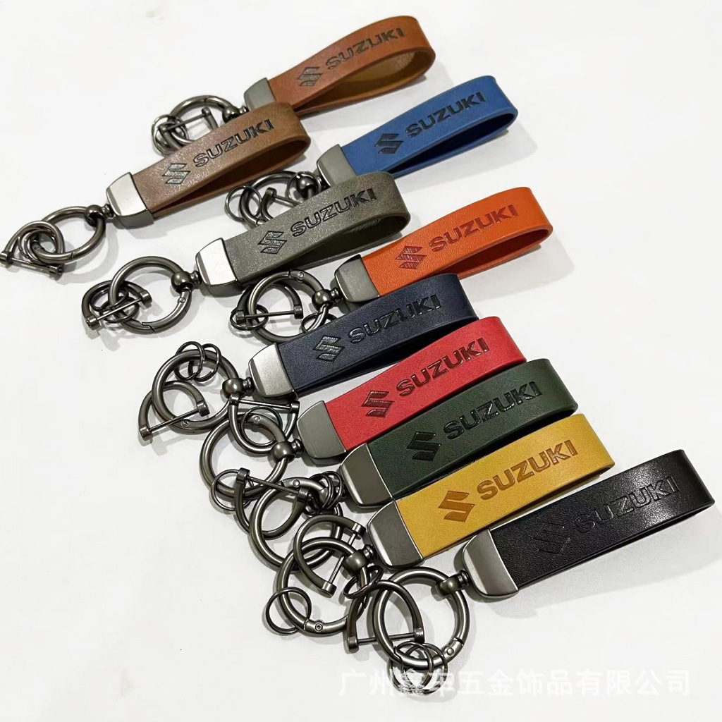 국경 간 고급 자동차 키 체인 패션 브랜드 복고풍 가죽 로고 키 체인 펜던트 보석 공장 도매스토어 가기