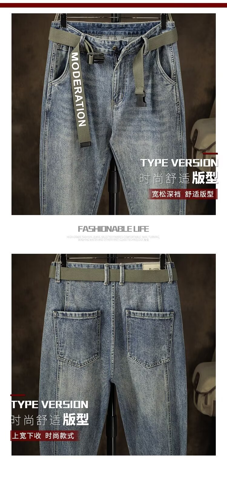 봄과 가을 아빠 청바지 트렌디 브랜드 남성 복고풍 뚱뚱한 루즈 스플리싱 하렘 인기 핫 스타일 마틴 바지스토어 가기