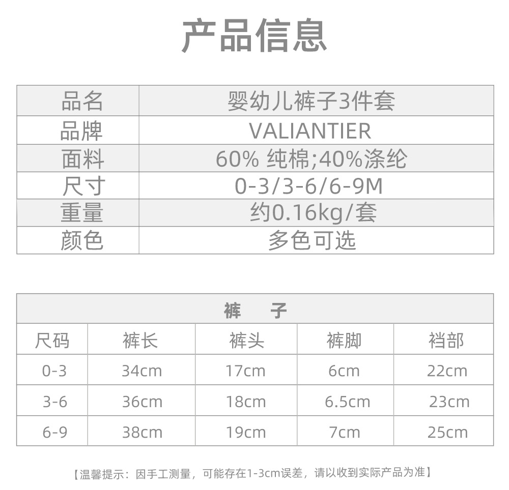 국경 3 팩 100 면 신생아 바지 유아면 부드러운 레깅스 외부 바지 도매