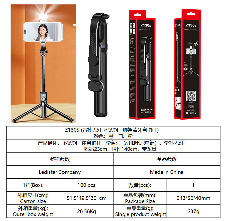• Z130s 싱글 라이트 화이트 [셀카봉 1.4m개 + 버튼 배터리 블루투스 리모컨 셀카 + 필라이트 1개]