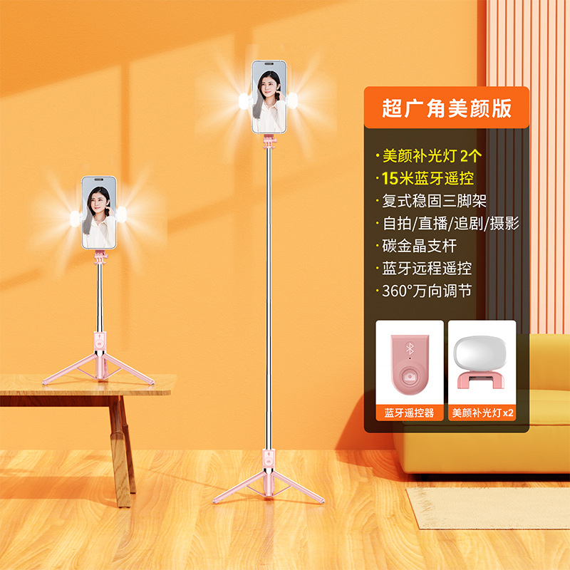 • Z130s 듀얼 라이트 핑크 [셀카봉 1.4m개 + 버튼 배터리 블루투스 리모컨 셀카 + 필라이트 2개]
