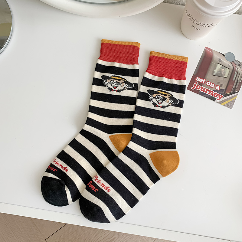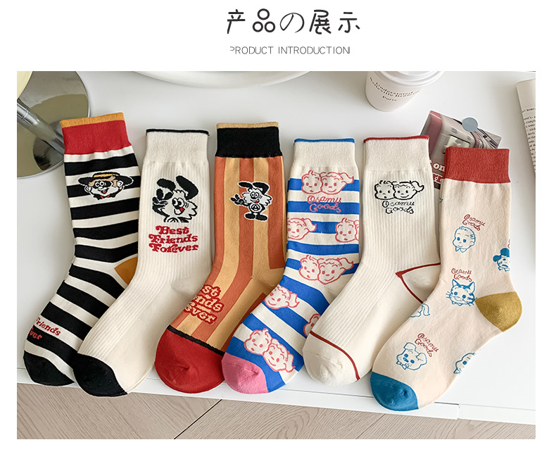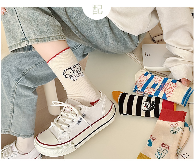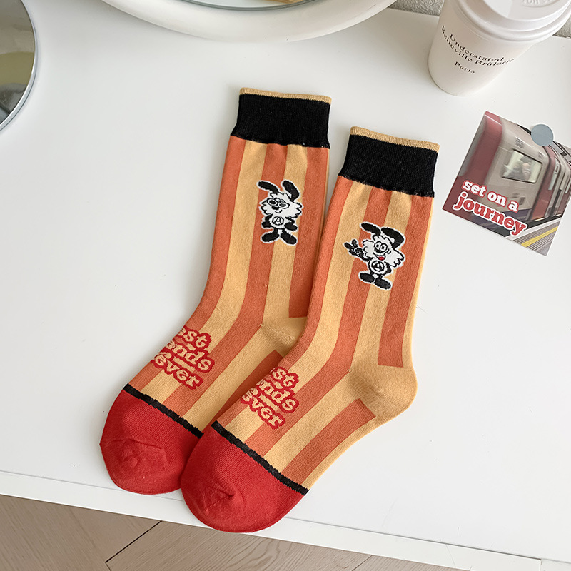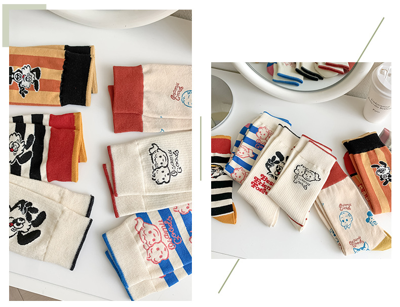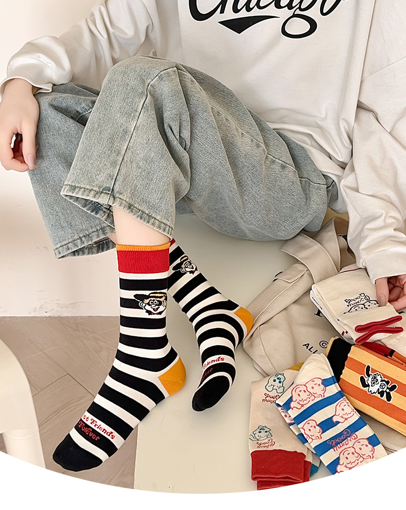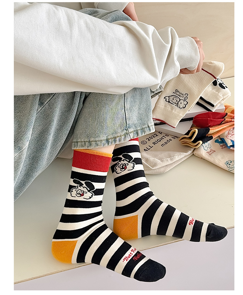유행 브랜드 버거 도둑 강아지 시리즈 양말 면 4 계절 성인 만화 중간 양말 줄무늬 인쇄스토어 가기