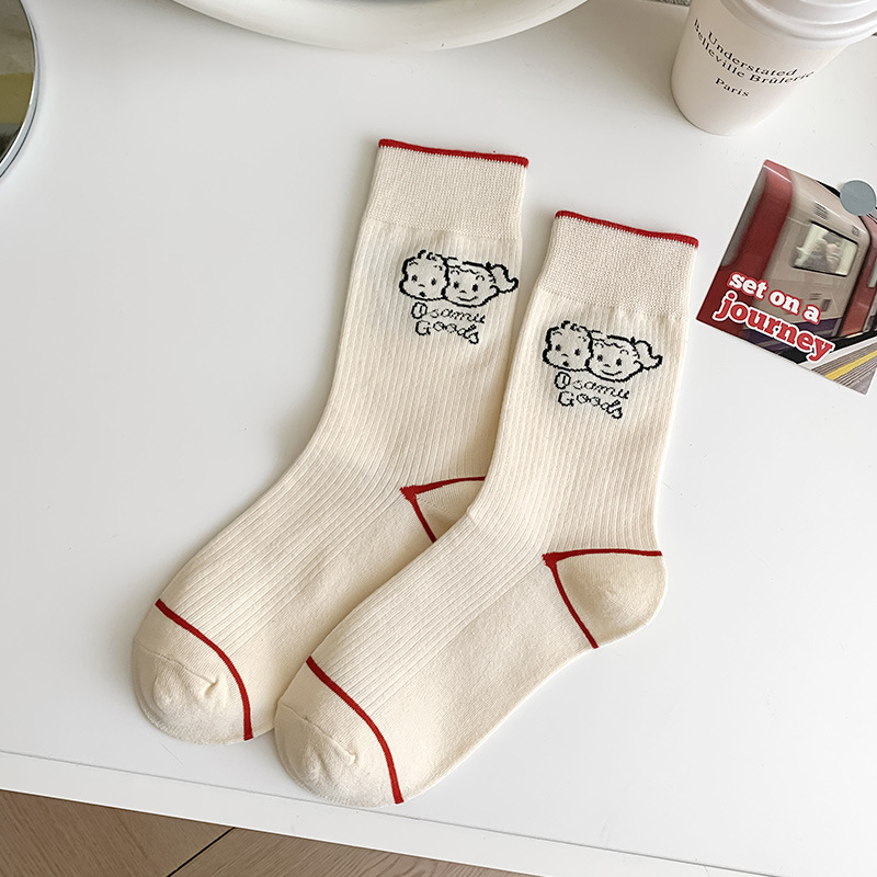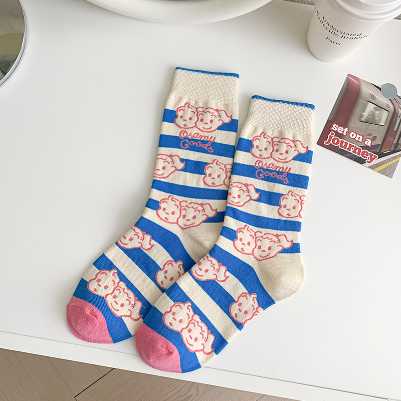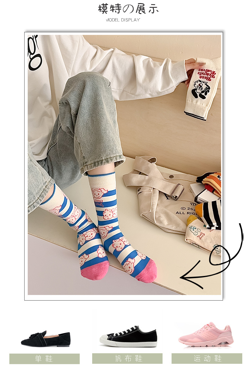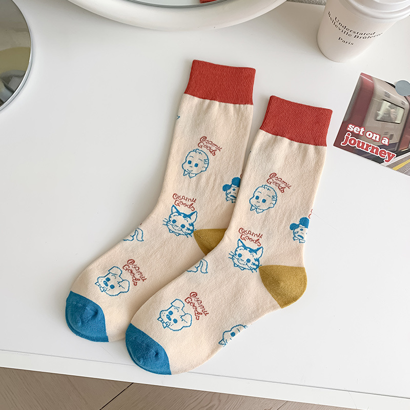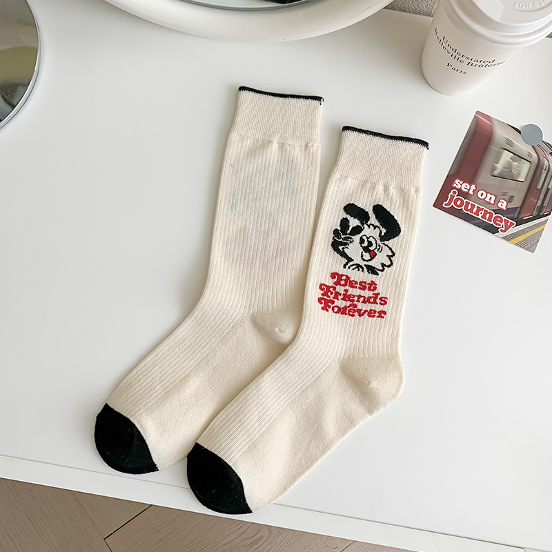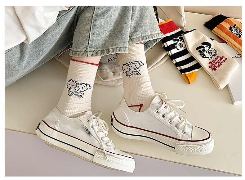 유행 브랜드 버거 도둑 강아지 시리즈 양말 면 4 계절 성인 만화 중간 양말 줄무늬 인쇄스토어 가기